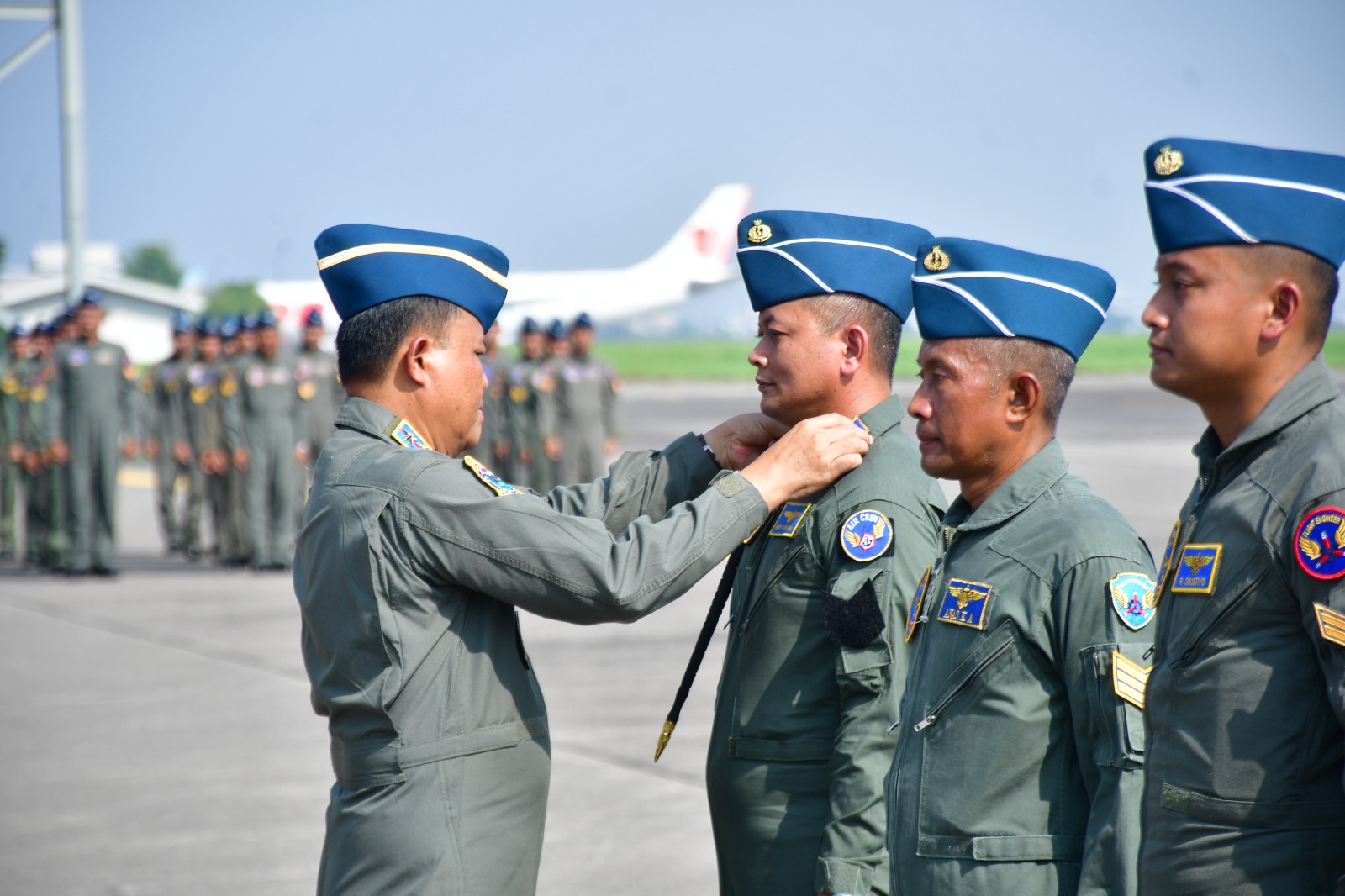 104 prajurit Bintara dan Tamtama jajaran Pusat Penerbangan TNl Angkatan Laut (Puspenerbal) mendapat kenaikan pangkat satu tingkat lebih tinggi pada kala waktu 1 Apri 2025, Upacara Kenaikan Pangkat dijajaran Penerbangan TNl AL wilayah Surabaya ini digelar di Apron Pangkalan Udara TNl AL, Juanda, Sidoarjo, Selasa (8/4/2025).