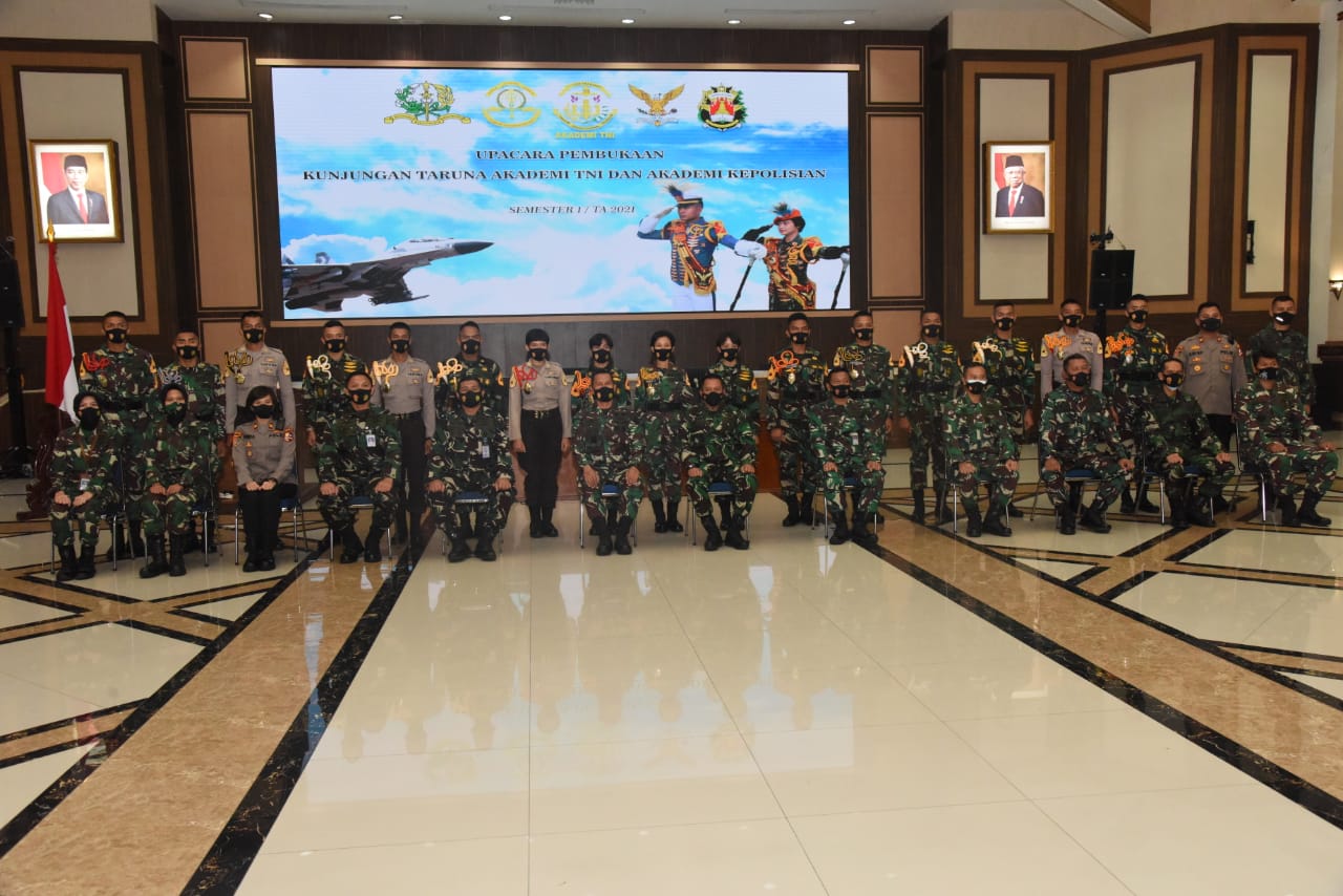 Komandan Jenderal (Danjen) Akademi TNI Marsekal Madya TNI Tamsil Malik, S.E., M.M. dalam sambutan tertulisnya yang dibacakan Wadanjen Akademi TNI mengatakan, ditengah situasi pandemi Covid-19 yang belum sepenuhnya teratasi, kegiatan Kunjungan Taruna Akademi TNI dan Akpol Semester I TA 2021 tetap dilaksanakan dengan tetap menerapkan protokol kesehatan, sebagai salah satu dari agenda kegiatan integrasi yang dilaksanakan secara rutin setiap semester.