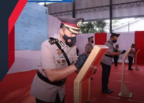 Serah terima jabatan (Sertijab) ini dilakukan langsung oleh Kapolda Sumsel Irjen Pol Prof Dr Eko Indra Heri S, MM di Lapangan Tenis Indor Paakri Palembang Senin (09/08/