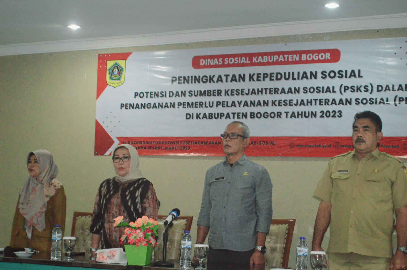 Bogor news investigasi.com 86.Sebanyak 55 orang PSKS,(Potensi dan Sumber Kesejahteraan Sosial) di Kabupaten Bogor mengikuti kegiatan bimbingan teknis (bimtek) dalam rangka peningkatan kepedulian potensi dan sumber kesejahteraan sosial dalam pengamanan pemerlu pelayanan kesejahteraan sosial ( ppks) di kabupaten Bogor yang dilaksanakan di hotel Puri Ayuda resort Mega mendung, Senin – Rabu ( Senin 7 Maret 2023)