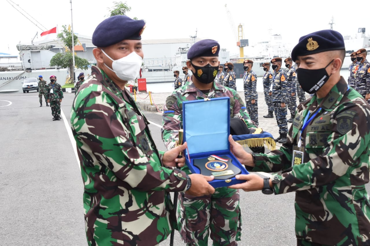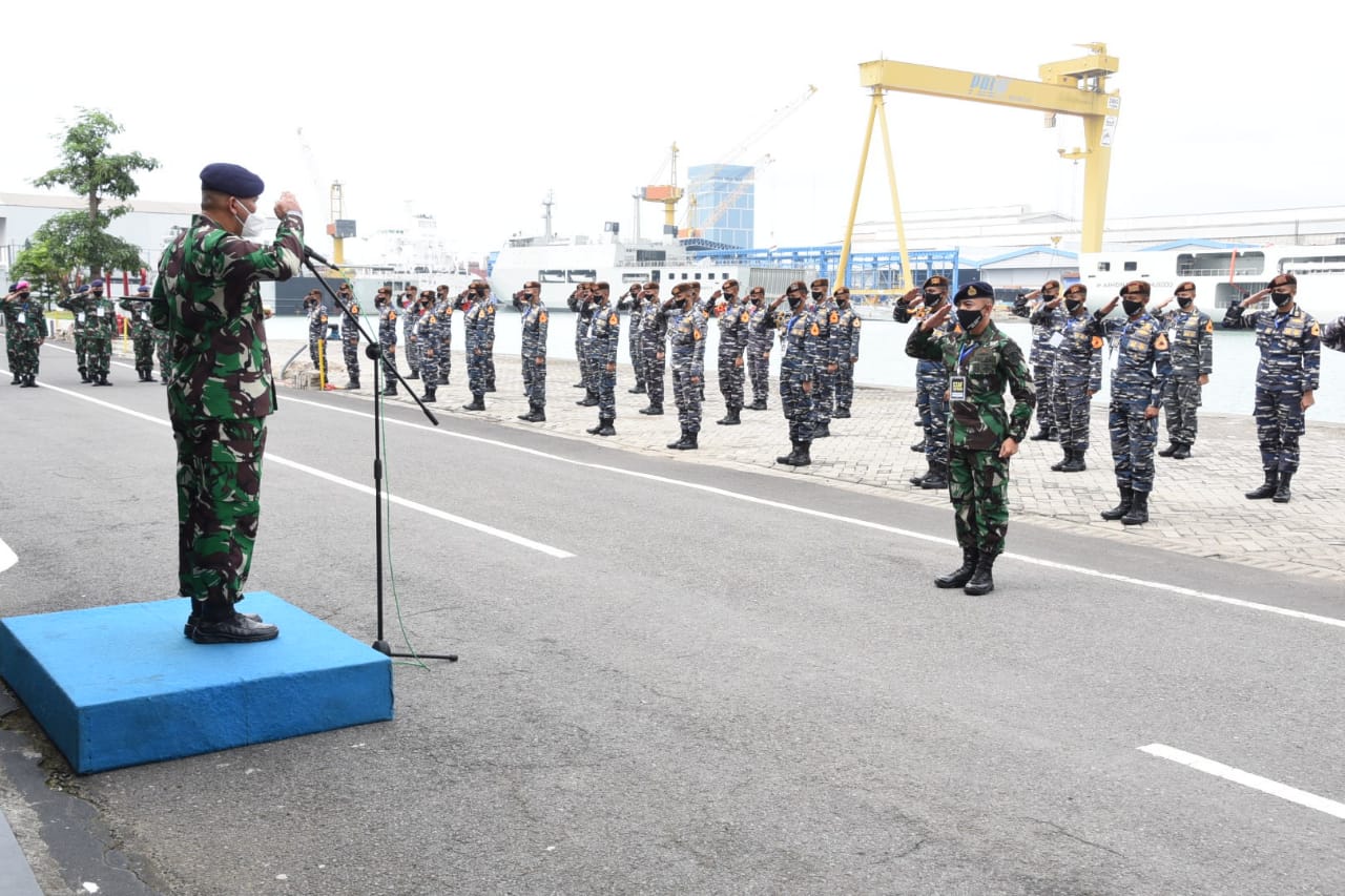 Dirdik AAL Kolonel Laut (P) Kemas M. Ikhwan Madani, S.Sos., M.Si. mewakili Gubernur AAL Laksda TNI Tunggul Suropati, S.E., M.Tr (Han) melepas keberangkatan Satuan Latihan (Satlat) Magang KRI Taruna AAL di halaman gedung Mandala, Kesatrian AAL, Bumimoro, Surabaya, Senin (8/2/2021), menuju Koarmada II Surabaya.