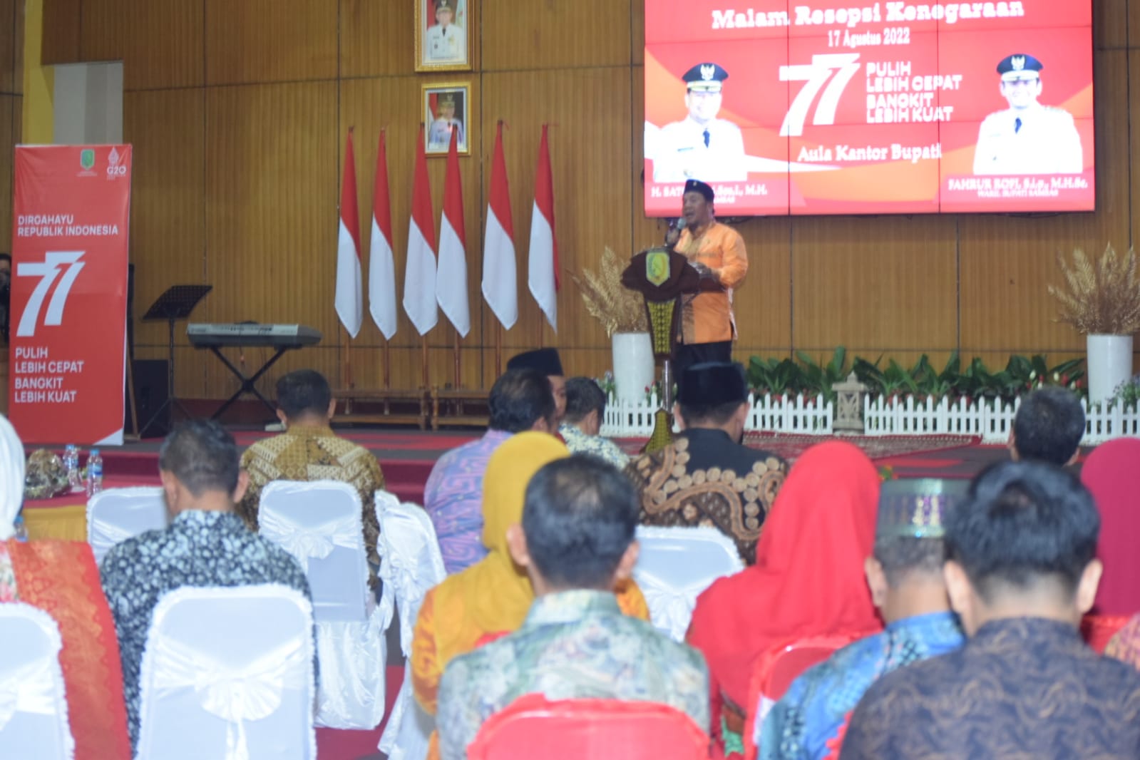 “Dengan momentum Peringatan Ulang Tahun ke-77 Republik Indonesia, saya atas nama lembaga Dewan Perwakilan Rakyat Daerah Kabupaten Sambas, mengajak semua pemangku kepentingan atau stakeholder, pemerintah, masyarakat, alim ulama, pemuka masyarakat, pemuka agama, pemuka adat dan budaya, dunia usaha dunia industri, pemuda dan kaum wanita, untuk bekerja bersama, saling menopang, saling tolong menolong, saling mendukung untuk memperkuat semangat pembangunan Kabupaten Sambas berkemajuan, untuk Indonesia Pulih Lebih Cepat Bangkit Lebih Kuat,” tegas dia.