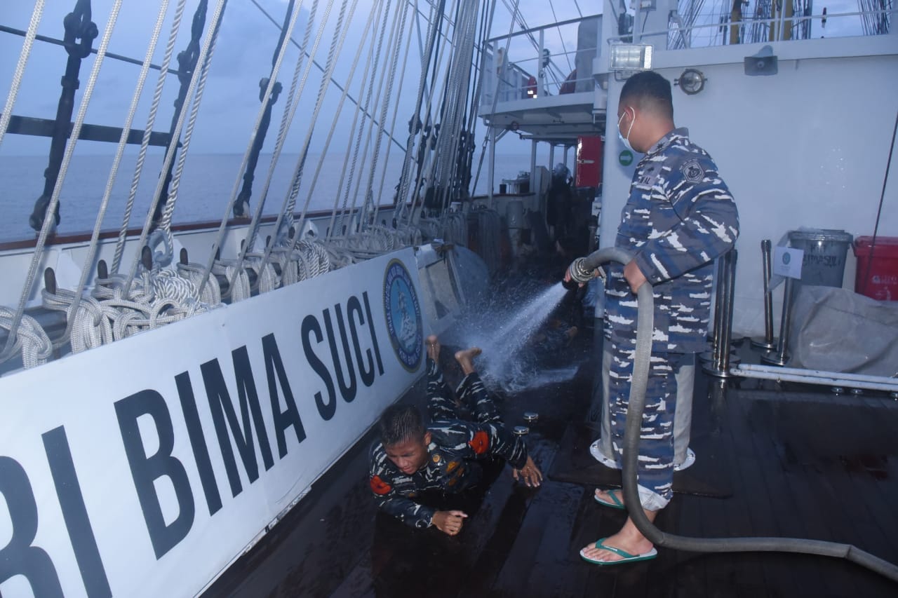 Selain 89 Taruna Tingkat III Angkatan ke-68 Satlat KJK 2021, beberapa staf latihan dan anggota KRI Bima Suci yang belum pernah Mandi Khatulistiwa, juga wajib menjalani prosesi Mandi Khatulistiwa saat KRI Bima Suci yang ditumpanginya itu melintas titik koordinat 0 (Nol) derajat Garis Khatulistiwa di perairan Selat Karimata.
