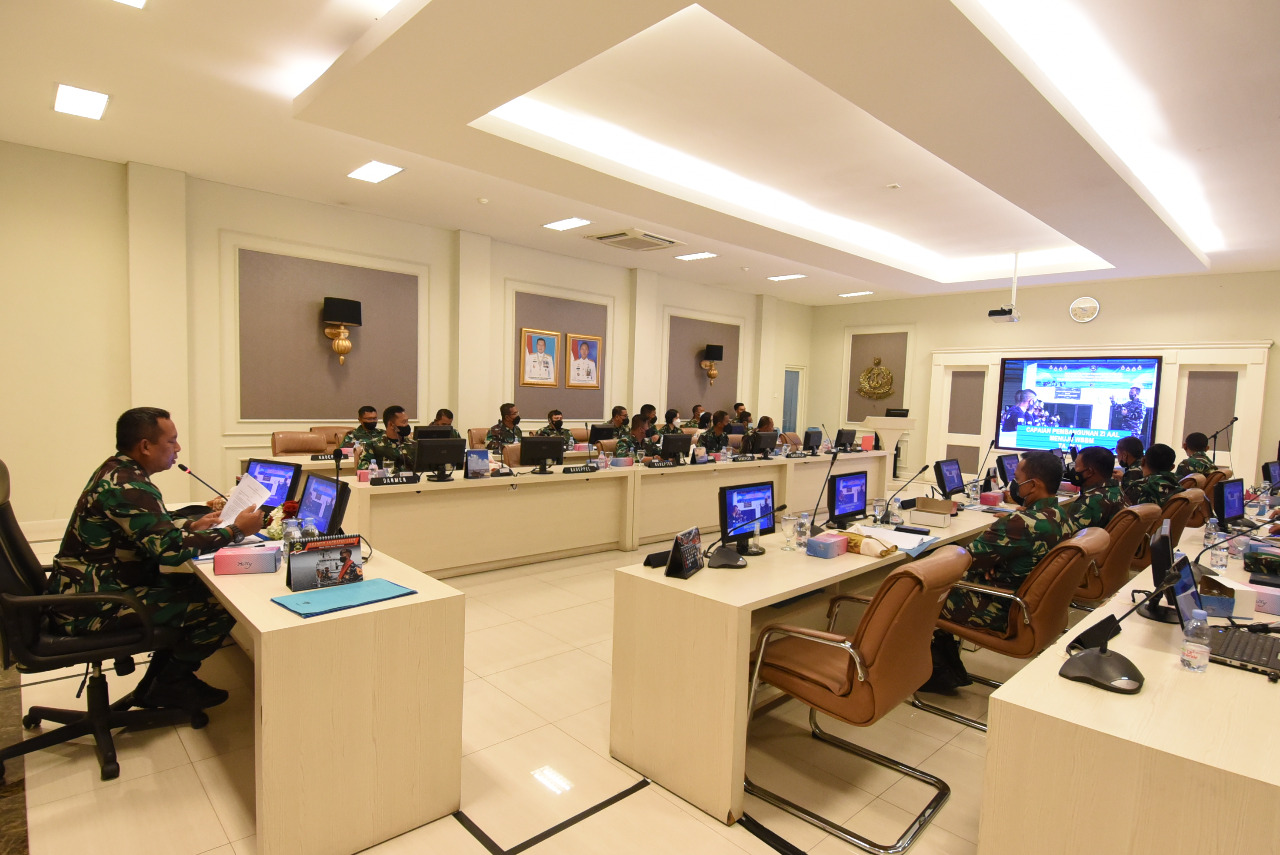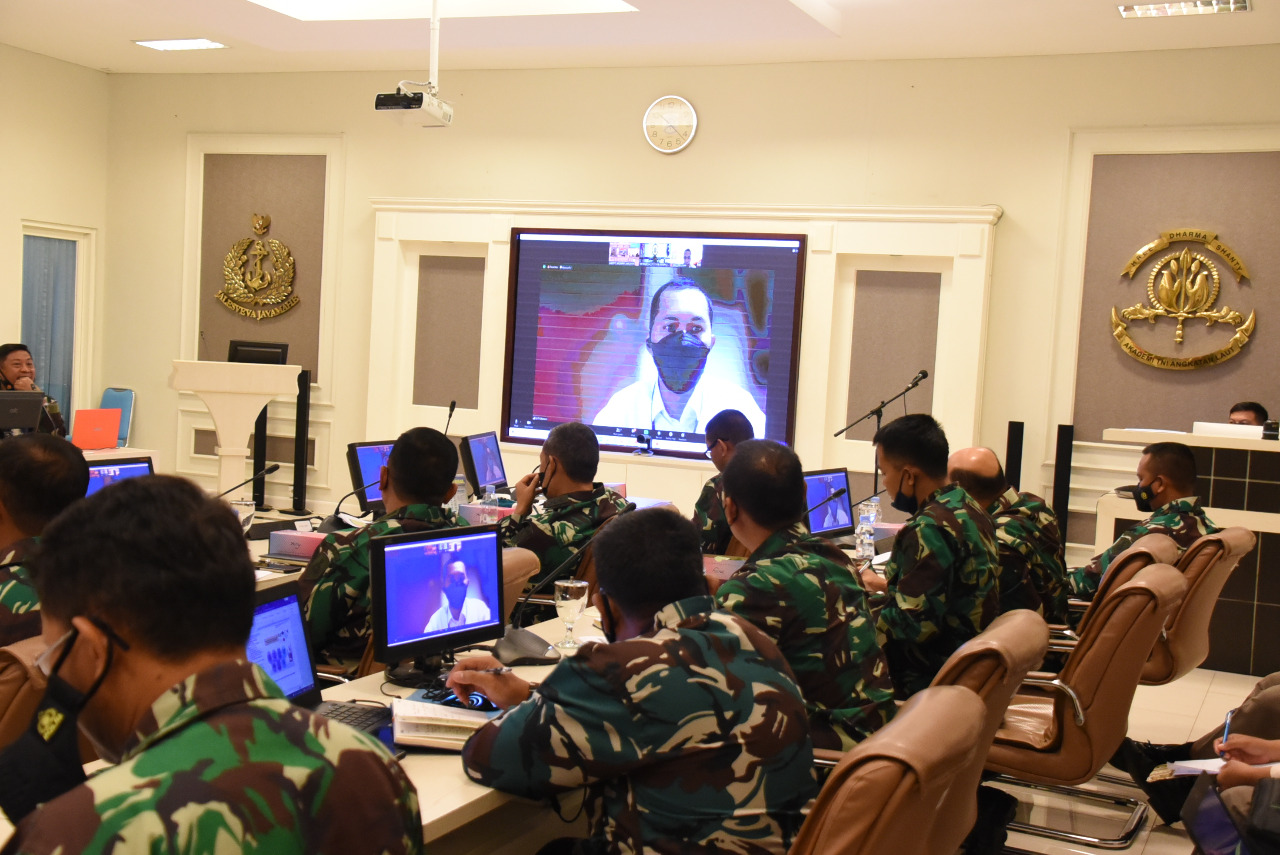 Wakil Gubernur AAL, Laksma TNI Rudhi Aviantara, S.E., M.Si., M.Tr (Han)., CHRMP, mewakili Gubernur AAL, Mayjend TNI Nur Alamsyah, S.E., M.M., M.Tr (Han) memimpin Tim RB ZI AAL memaparkan capaian pembangunan Zona Integritas AAL dalam upaya mewujudkan WBBM AAL tahun 2021 kepda Tim Penilai Kemenpan RB yang digelar secara daring dari Rupatama Gedung R. Soebijakto, Kesatrian AAL Bumimoro, Surabaya ini.