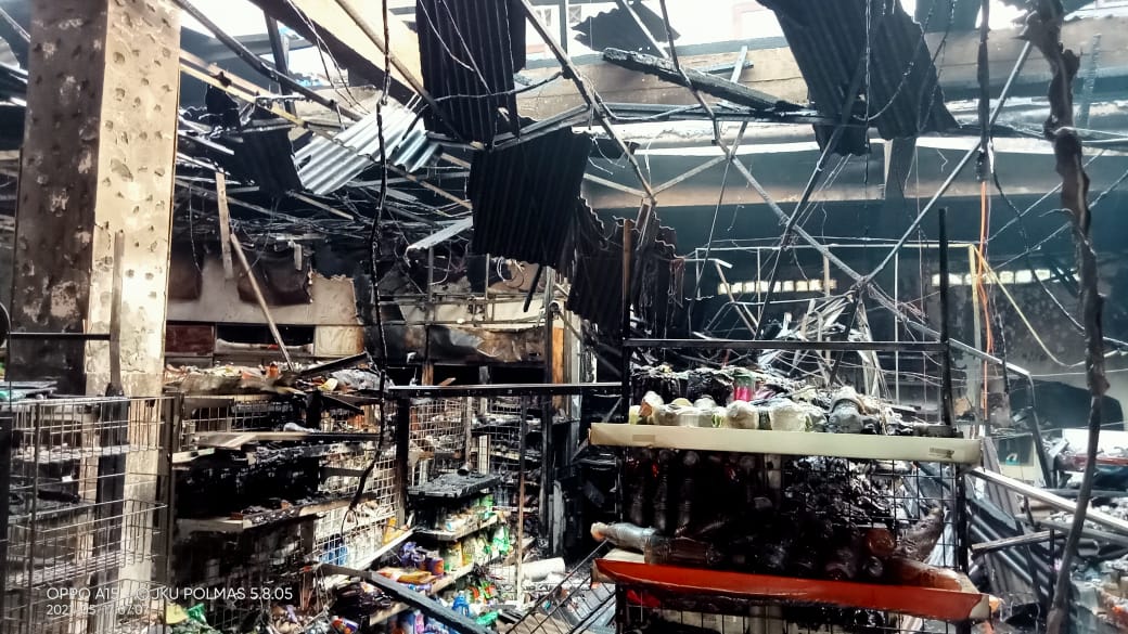 Kebakaran hebat telah menghanguskan sebuah toko Alfamart di Jalan Transyogi Jonggol, no. 30 RT 004, RW 04 Desa Cileungsi Kecamatan Cileungsi Kabupaten Bogor, Senin Subuh 17/5/2021.