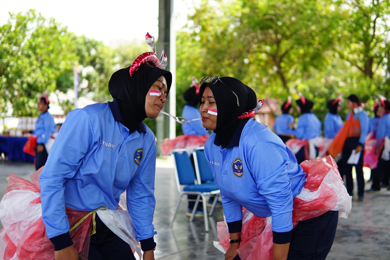 Aneka lomba khas Tujuh belasan peringatan HUT ke-80 Kemerdekaan Rl Tahun 2025 mewarnai Acara Pertemuan Rutin Korps Wanita TNl Angkatan Laut (Kowal) Pusat Penerbangan TNl Angkatan Laut (Puspenerbal) yang digelar di Shelter Skuadron Udara 400 Wing Udara 2 Puspenerbal, Lanudal Juanda, Rabu (13/8/2025).