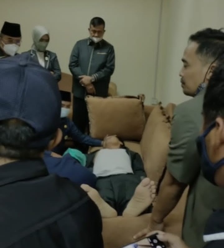 Anggota DPRD Kota Bekasi dari Fraksi Gerindra, Mustofa mendadak sesak nafas di tengah proses Sidang Paripurna hari ini Kamis, (25/11/2021). Diduga wakil rakyat tersebut terkena serangan jantung.