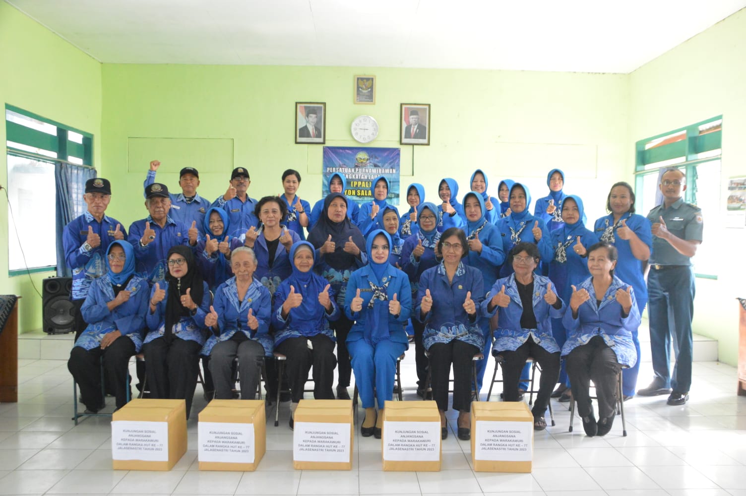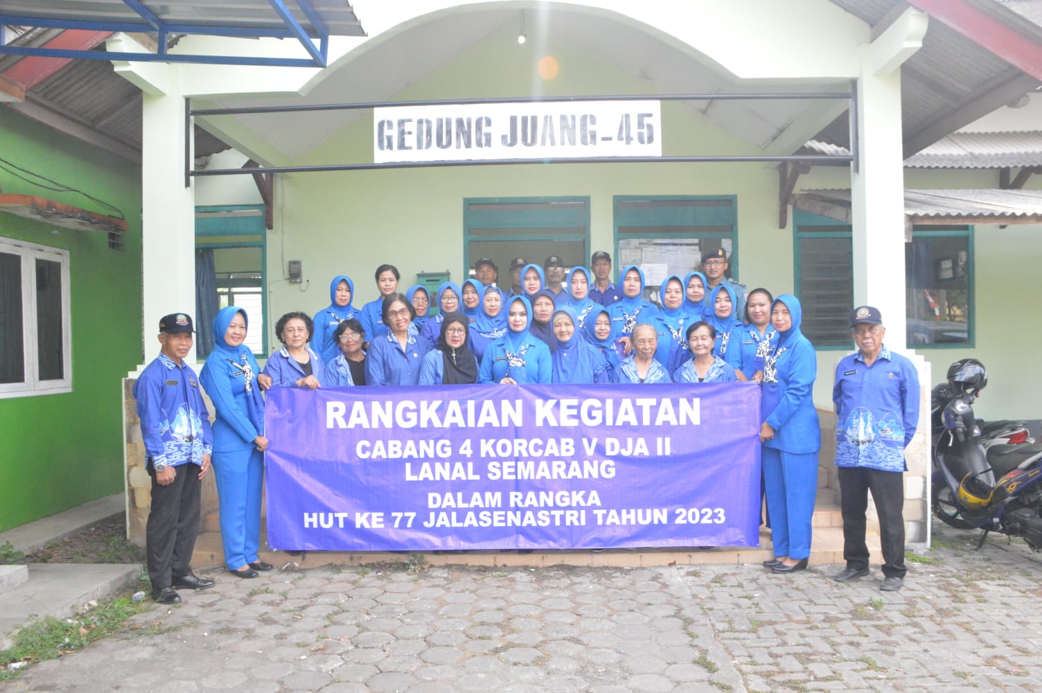 Ketua Cabang 4 Korcab V DJA II Lanal Semarang Ny. Heny Hariyono Masturi beserta pengurus Jalasenastri Cabang 4 Korcab V DJA II melaksanakan kunjungan kerja serta Anjangsana dalam rangka HUT Ke-77 Jalasenastri Tahun 2023 kepada Warakawuri TNI Angkatan Laut dan PPAL Rayon Salatiga yang bertempat di Gedung Juang’45 Jl. Pemuda No.97 Pabelan Salatiga. Rabu (23/8/2023).