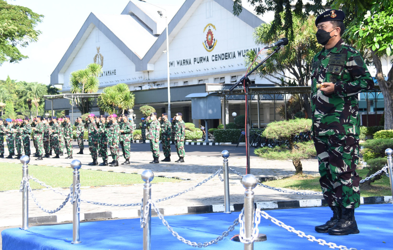 Dalam pelaksanaan apel khusus Senin 26 April 2021 ini tidak seperti pelaksanaan apel khusus lainya, karena dalam apel ini Komandan Komando Pembinaan Doktrin Pendidikan dan Latihan TNI Angkatan Laut (Dankodiklatal) Laksamana Madya TNI Nurhidayat memimpin doa untuk 53 Awak Kapal Selam KRI Nanggala-402 yang gugur dalam menjalankan tugas. Adapun apel khusus tersebut dilaksanakan di Lapangan Laut Maluku Kesatrian Kodiklatal Bumimoro Surabaya, (26/4/2021).