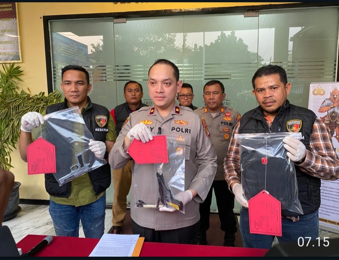 ” Kami juga turut mengamankan beberapa barang bukti diantaranya 2 pucuk senjata mainan yang dipergunakan oleh pelaku untuk menakuti korbannya serta 1 buah kunci letter T, 3 buah anak kunci serta 4 unit sepeda motor, ” Ujar Kompol Billy Gustiano Barman saat press confrence di Mapolsek, Rabu, 27/9/2023.