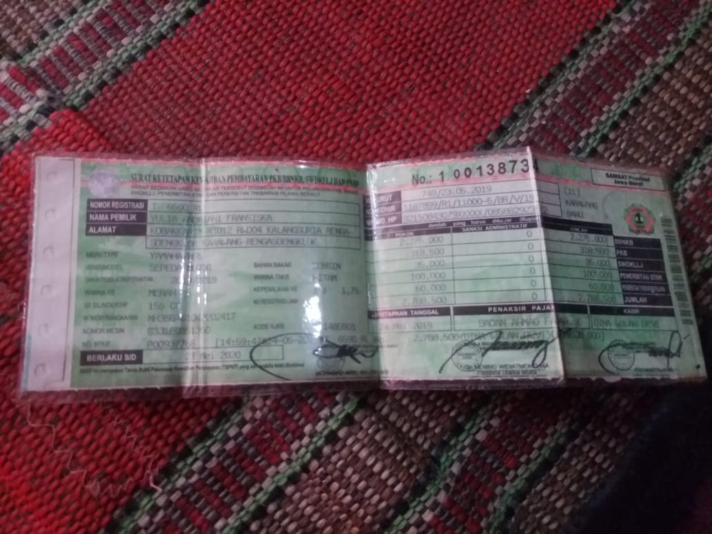 Ironisnya kendaraan tersebut, bukan milik Parna sendiri melainkan milik oranglain bernama Yulia Andriani Fransiska dengan alamat Rengas dengklok Krawang, mirisnya lagi pemilik perusahaan menahan kendaraan roda dua/motor tanpa dilengkapi STNK.