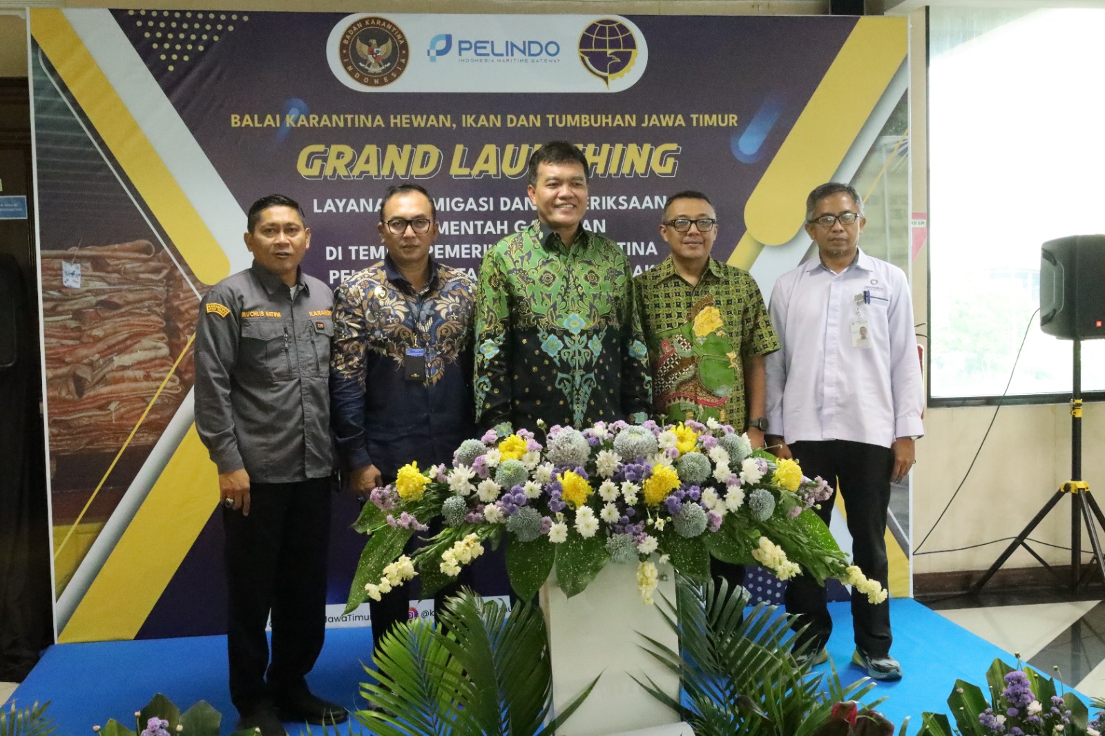 Komandan Pangakalan Utama TNI AL (Danlantamal) V Brigjen TNI Marinir Joni Sulistiawan, S. H., M. Han., diwakili Asops Danlantamal V Kolonel Laut (P) M. Taufik, M. M., M. Tr. Hanla., menghadiri Grand Launcing Layanan Fumigasi Dan Pemeriksaan Kulit Mentah Garaman di tempat pemeriksaan Karantina Pelabuhan Utama Tanjung Perak Surabaya. Jumat (15/03/2024)