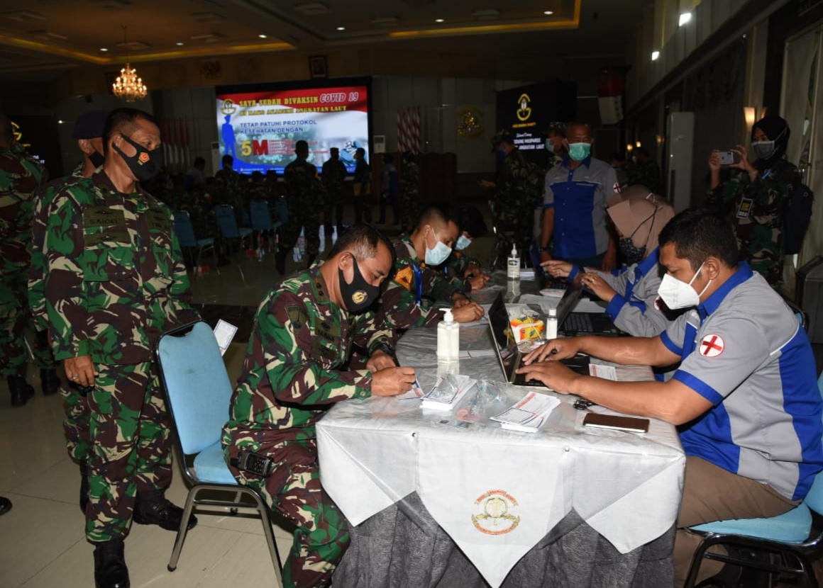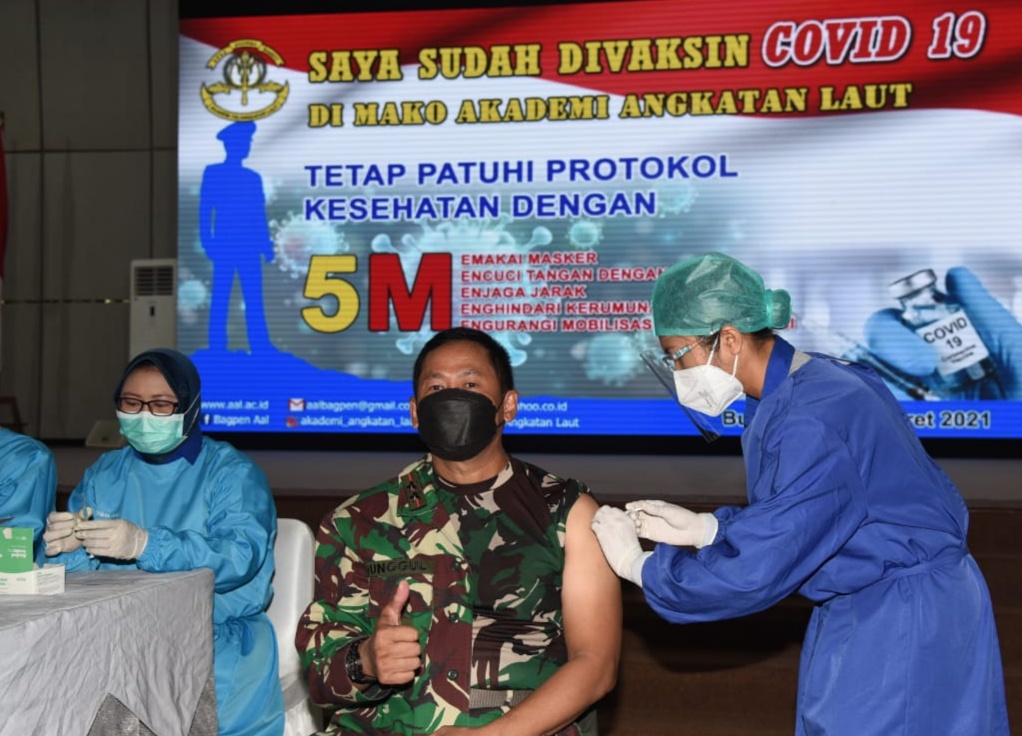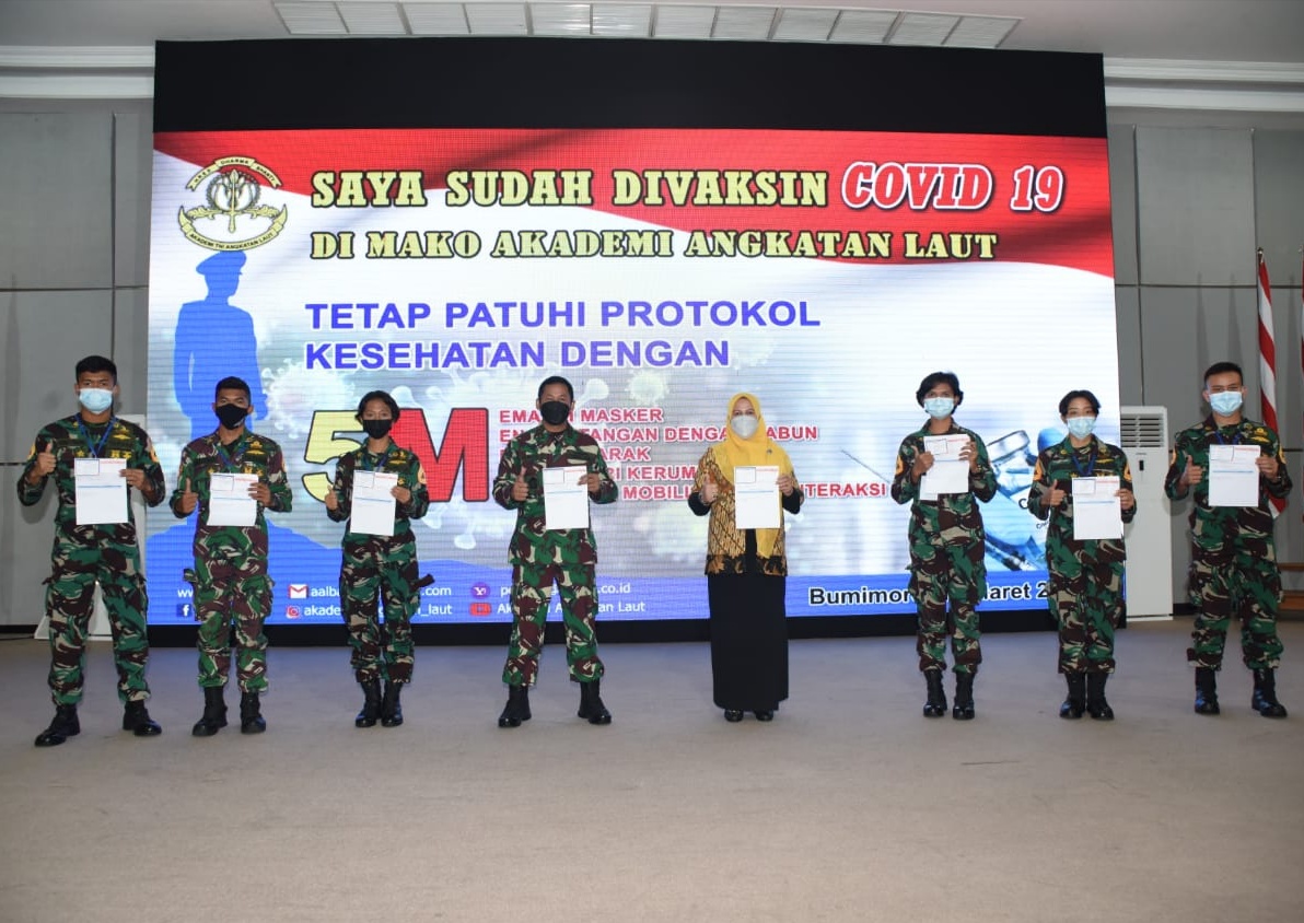 Guna membangun dan menciptakan kekebalan komunitas atau herd immunity, ratusan Taruna-Taruni dan personel Akademi Angkatan Laut (AAL) melaksanakan vaksinasi Covid-19 secara bertahap yang digelar di Gedung Mas Pardi, Kesatrian AAL Bumimoro, Surabaya, Rabu (10/3).