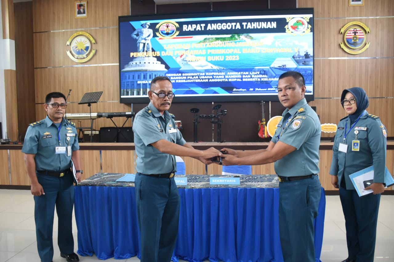 Komandan Pangkalan Utama TNI Angkatan Laut (Danlantamal) V Brigjen TNI Marinir Joni Sulistiawan, S. H., M. Han., yang diwakili Asisten Perencanaan dan Anggaran (Asrena) Danlantamal V Kolonel Laut (P) Anton Pratomo, S. E., M. Tr. Hanla., secara resmi membuka Rapat Pertanggungjawaban Pengurus dan Pengawas Primkopal Lantamal V Tahun Buku 2023, di Gedung Serba Guna Mako Lantamal V Surabaya. Selasa (06/02/2024).