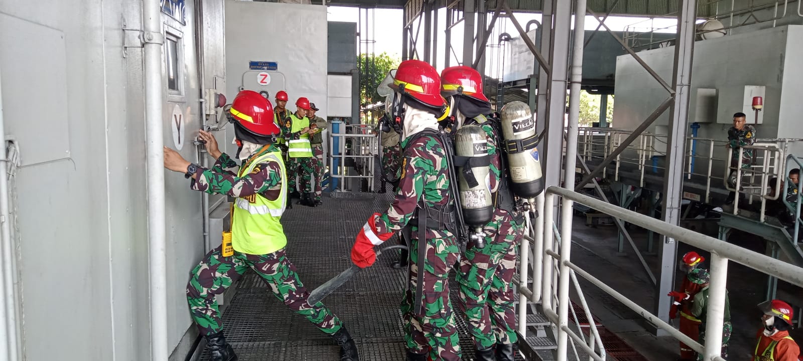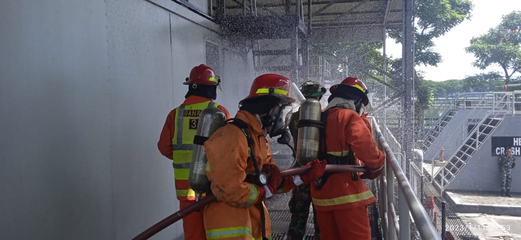 Sebanyak 67 orang siswa Pendidikan Pertama Bintara (Dikmaba) TNI Angkatan Laut Angkatan XLII/1 Kejuruan Mesin dan Listrik yang saat ini tengah menempuh pendidikan Tahap Dasar Golongan Lanjutan (Sargolan) di Pusdiktek Kodikdukum Komando Pembinaan Doktrin, Pendidikan dan Latihan TNI AL (Kodiklatal) mengikuti Latihan Praktek (Lattek) Penyelamatan Kapal, Nuklir, Biologi dan Kimia (Peknubika) di Pusat Peknubika Kodiklatal Bumimoro Surabaya, Rabu (11/01/2023).