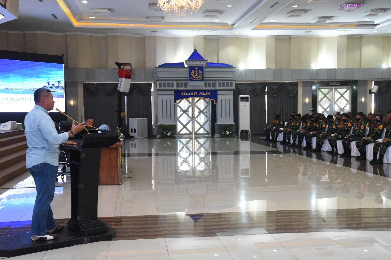 Taruna Akademi Angkatan Laut (AAL) Tingkat ll Angkatan ke-69 dan Tingkat lV Angkatan ke-67 mendapatkan masukan berharga dalam pembekalan bertema Membangun Karakter Trisila TNI AL dari Wakil Kepala Staf Angkatan Laut (Wakasal) periode 2017 dan Kepala Badan Keamanan Laut RI periode 2018, Laksdya TNI (Purn) A. Taufiquerrochman, S.E., di Gedung Mas Pardi, Kesatrian AAL Bumimoro, Surabaya, Selasa (12/10).
