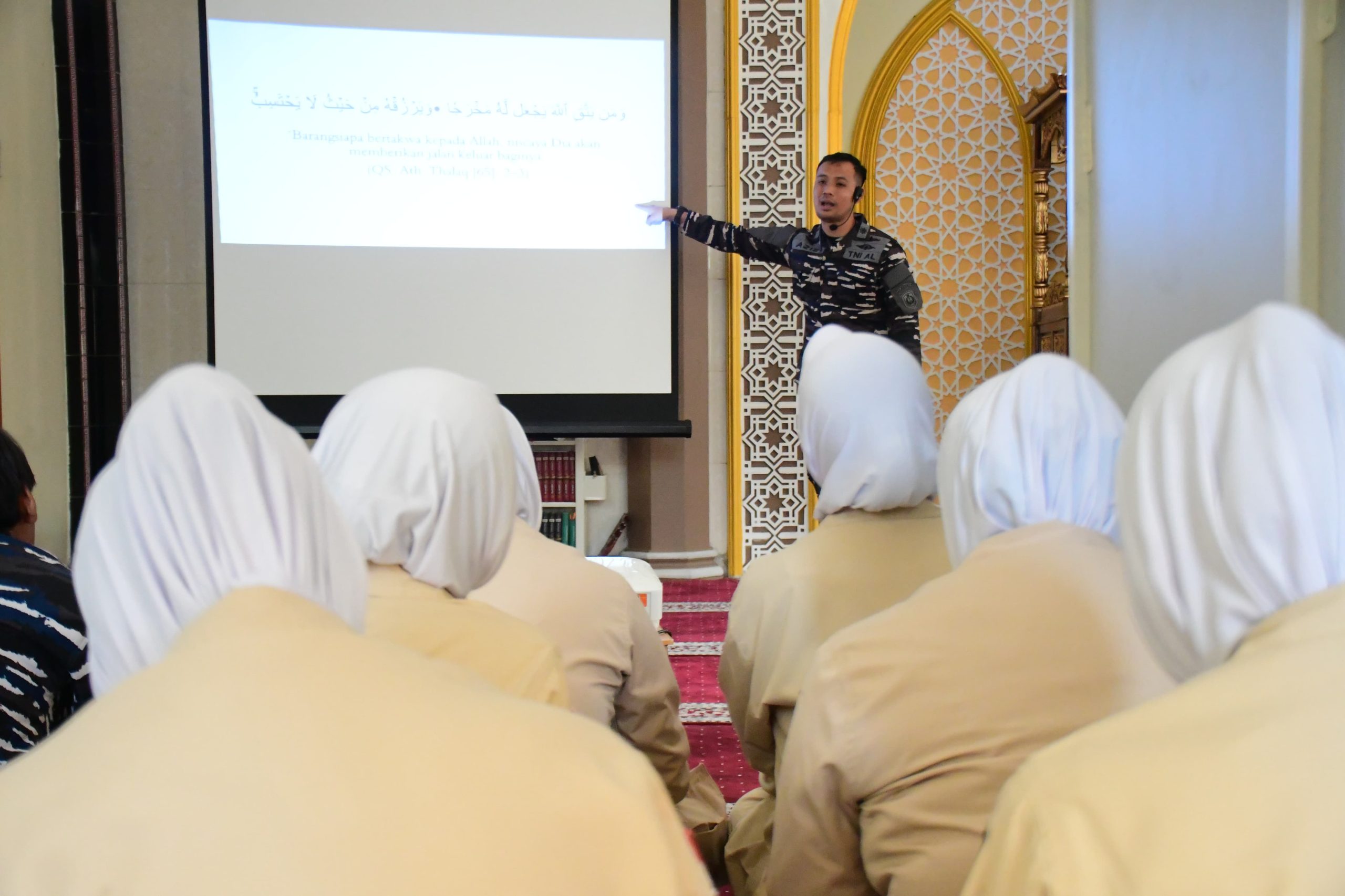 “Beriman, Berintegritas dan Bermental Tangguh Pondasi Pengabdian Pegawai P3K” merupakan tema materi Bintal yang disampaikan Narasumber, Perwira Rohani Islam (Parohis) Subditwatpers Ditpers, Puspenerbal, Ustadz Letda Laut (KH) Abdul Aziz, S.Pd., M.Pd., CTrQ.