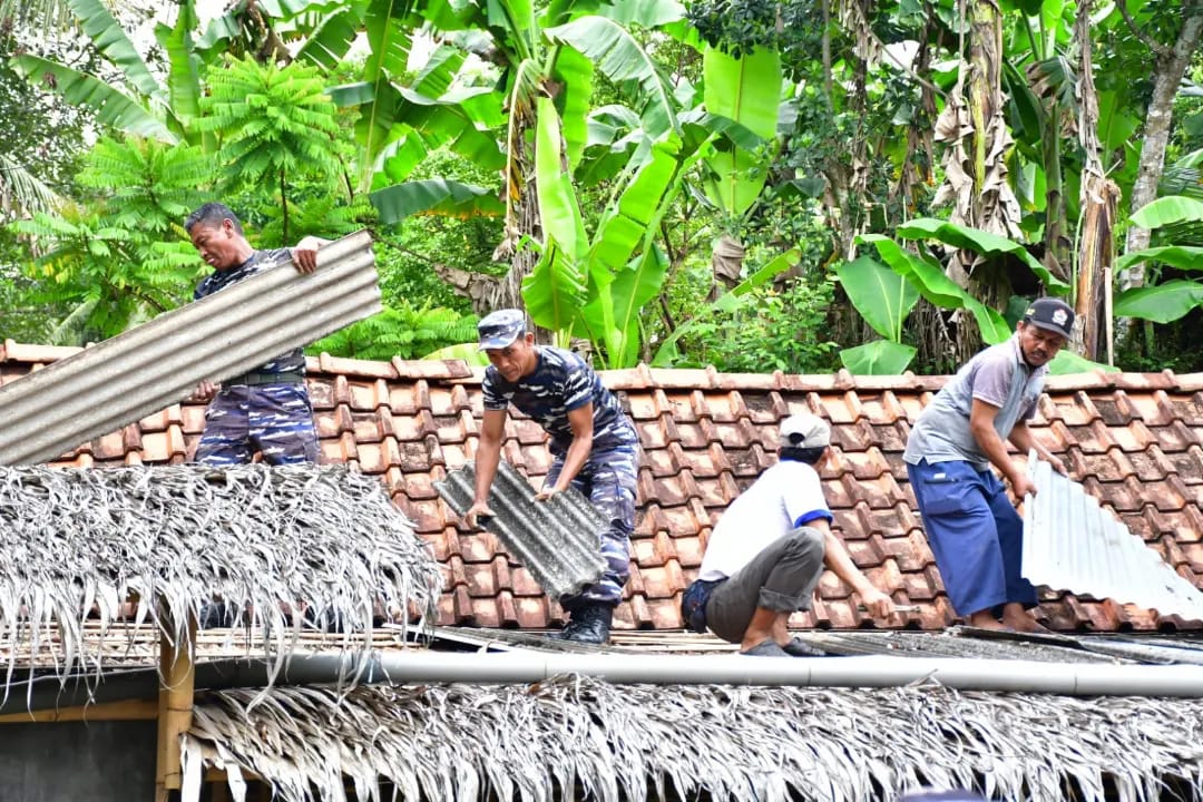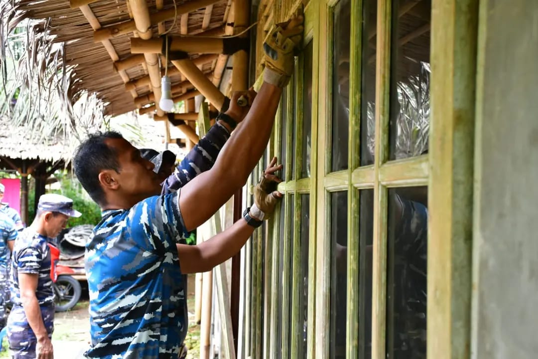 Komandan Pangkalan TNI AL (Lanal) Cilacap Kolonel Laut (PM) Sugeng Subagyo membenahi rumah salah satu Dalang muda yang bernama Ki Dalang Mongko Daryono sebagai salah satu bentuk kepedulian TNI Angkatan Laut terhadap seniman yang berasal dari Desa Dondong Kecamatan Kesugihan Kabupaten Cilacap, Selasa(07/03/2023).