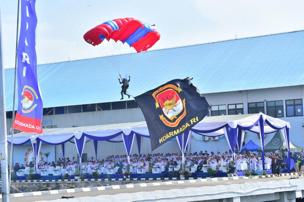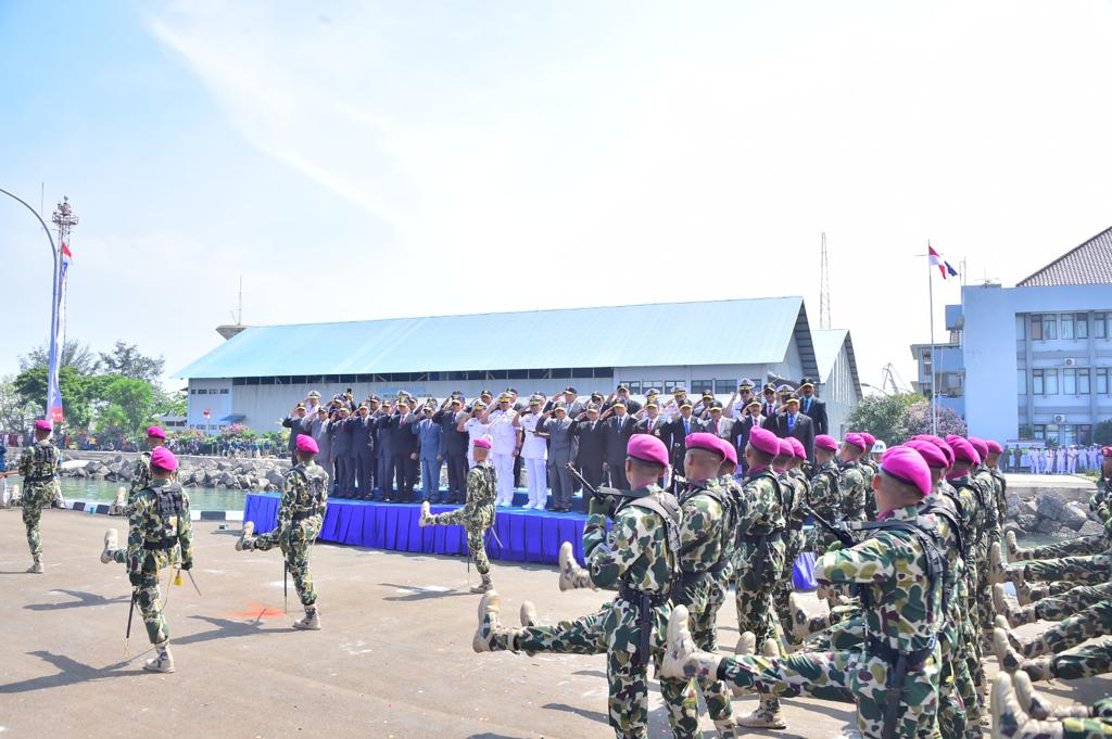Berlatar KRI John Lie (JOL) – 358 telah dilaksanakan upacara parade militer dengan Inspektur Upacara (Irup) Kepala Staf Angkatan Laut (Kasal) Laksamana TNI Dr. Muhammad Ali. Mengusung tema, “Armada RI Membangun Kekuatan Laut Nusantara Menuju Indonesia Maju,” Komandan Kodiklatal (Dankodiklatal) Letjen TNI Marinir Nur Alamsyah didampingi Ketua Gabungan Jalasenastri Kodiklatal Ny. Ayu Nur Alamsyah mengikuti acara Puncak Peringatan Hari Armada Republik Indonesia Ke-78 di Komplek Satuan Koarmada I Pondok Dayung, Jakarta Utara. Selasa (05/12/2023).