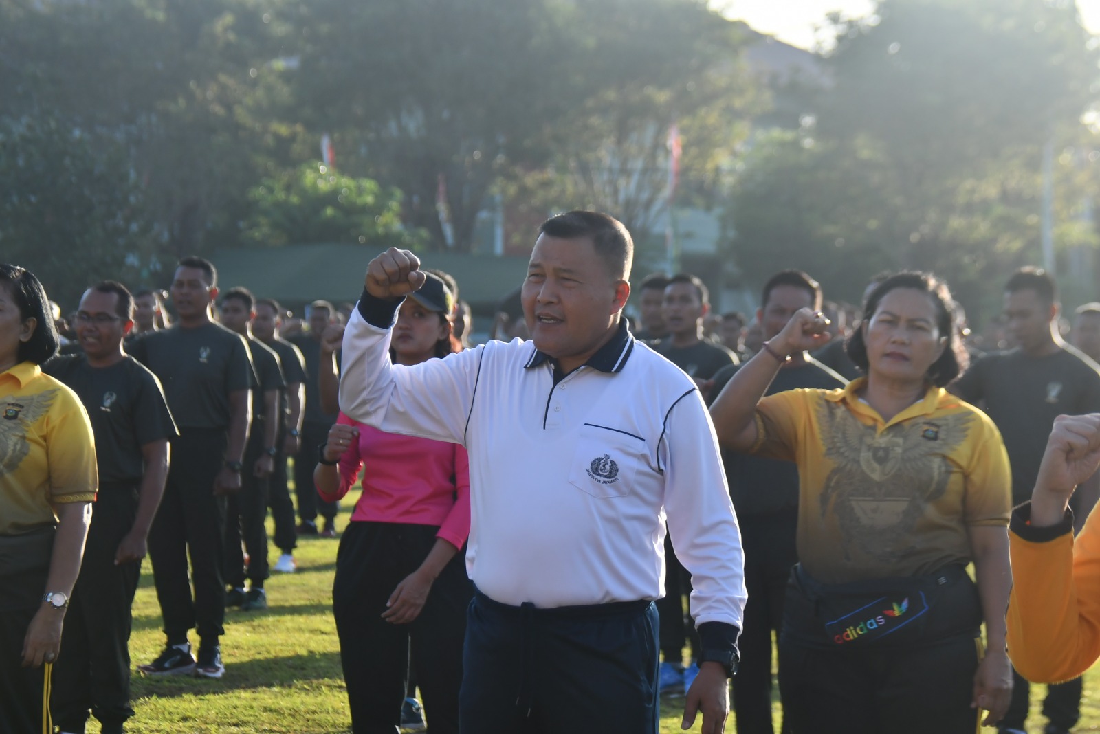 Komandan Pangkalan Utama TNI AL (Danlantamal) V Laksamana Pertama TNI Supardi melaksanakan olahraga bersama dengan Panglima TNI Laksamana TNI Yudo Margono dan Ibu Ketua Umum Dharma Pertiwi Ny. Vero Yudo Margono serta Forum Komunikasi Pimpinan Daerah (Forkompimda) Provinsi Bali di Lapangan I Gusti Ngurah Rai, Ds. Pemogan Kec. Denpasar Selatan, Kota Denpasar, Selasa (21/2/2023).
