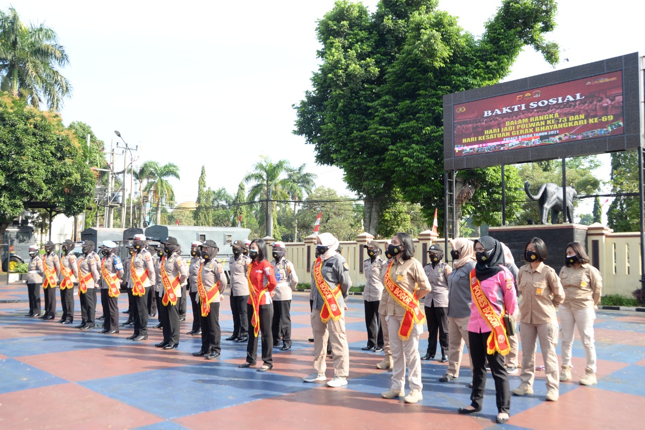 Dalam rangka menyambut HUT Polwan ke 73 dan HKGB ke 69 Polwan Jajaran Polres Bogor dan Bhayangkari Cabang Polres Bogor Gelar Bakti Sosial di desa Cimandala Kecamatan Sukaraja dengan sasaran Tim pemulasaran dan pembuat peti mati jenazah pasien covid 19.