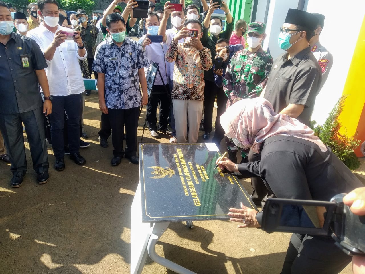 Acara seremonial peresmian gedung olah raga masyarakat, selain dihadiri Forkopimda, Sekda, beberapa Kadis, anggota DPRD kabupaten Bogor, Camat Jonggol, tokoh masyarakat dan ulama seeta para Kades se-kecamatan Jonggol tersebut, ditandai dengan penandatanganan prasasti serta pengguntingan pita, dipintu masuk utama gedung olah raga masyarakat (GOM) yang letaknya tak jauh dari kantor Kecamatan Jonggol.