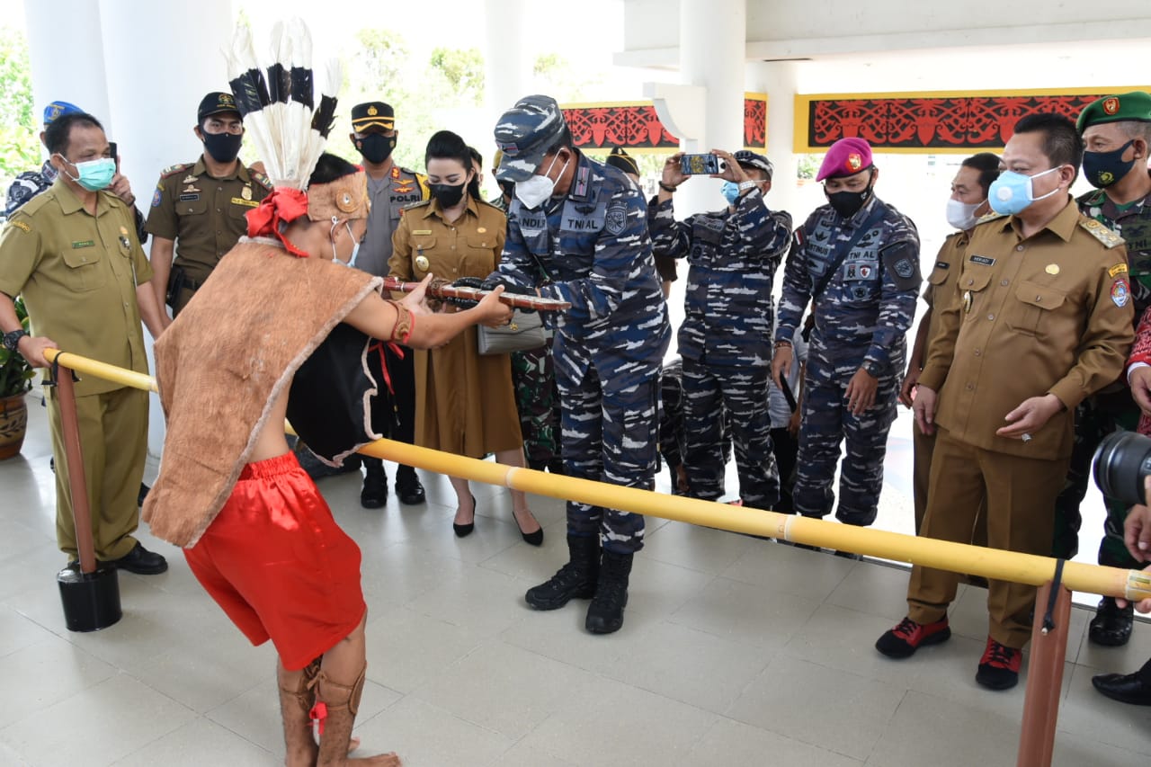 Bupati Landak Karolin Margret Natasa dan Wakil Bupati Landak Herculanus Heriadi bersama Forkopimda Landak, Sekretaris Daerah Kabupaten Landak, Kepala OPD Kabupaten Landak, dan para pengurus masjid di Kota Ngabang menyambut kedatangan kunjungan kerja Komandan Lantamal XII/Pontianak Brigjend TNI (Mar) Andi Rukman ke Kabupaten Landak di Kantor Bupati Landak, Senin (12/04/21).
