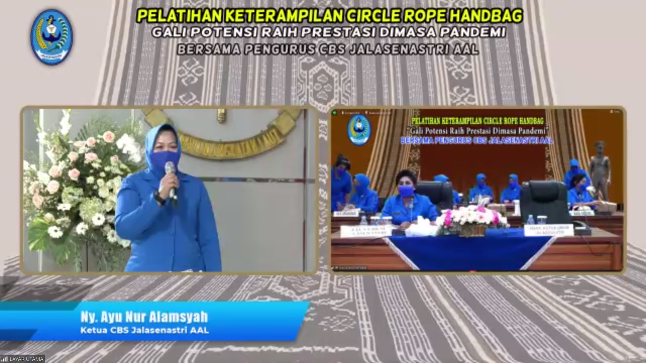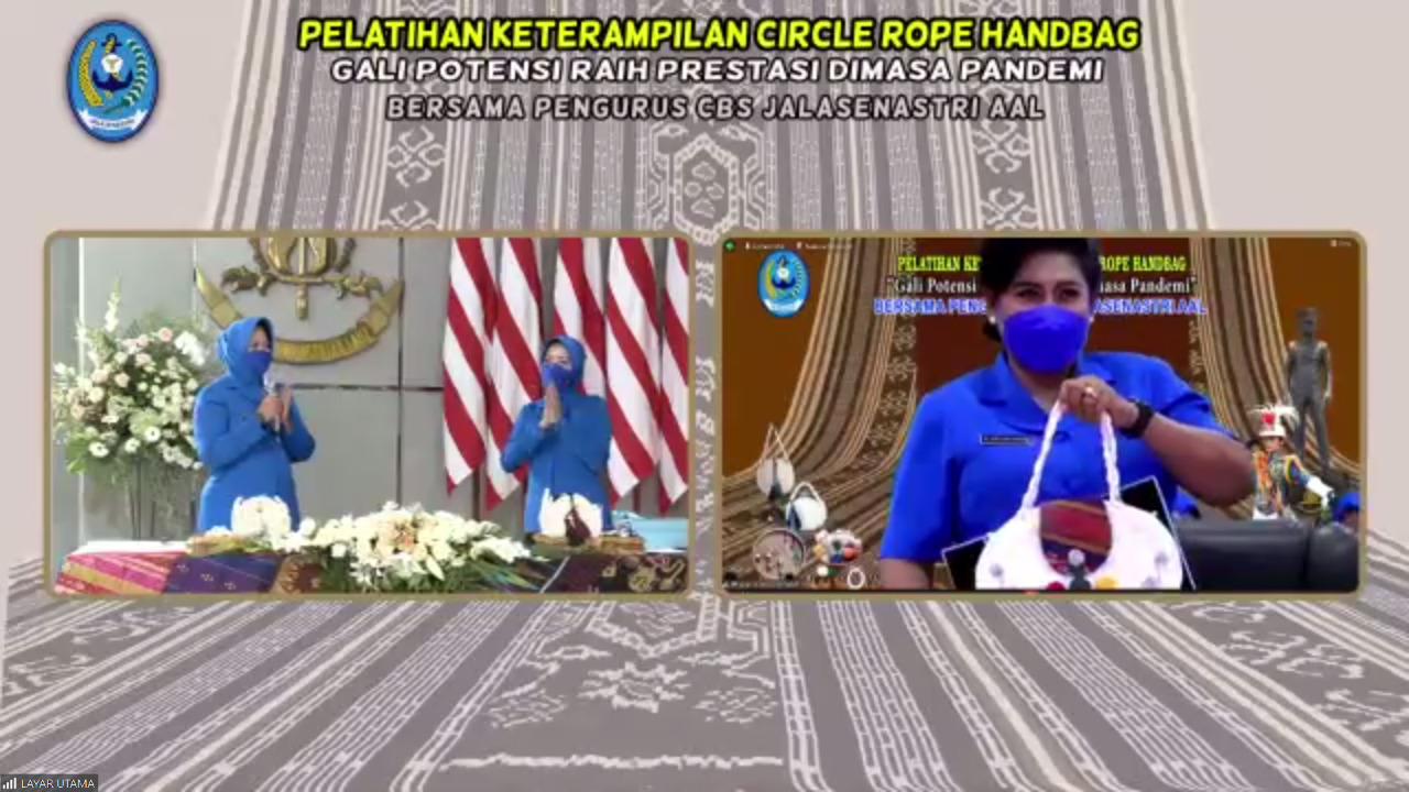 Pelatihan keterampilan secara virtual yang diinisiasi oleh Pengurus Pusat Jalasenastri ini, digelar secara bergilir. CBS Jalasenastri AAL yang mendapatkan giliran sebagai tuan rumah kali ini, menampilkan Pelatihan Keterampilan Circle Rope Handbag bertema “Gali Potensi, Raih Prestasi Dimasa Pandemi”.