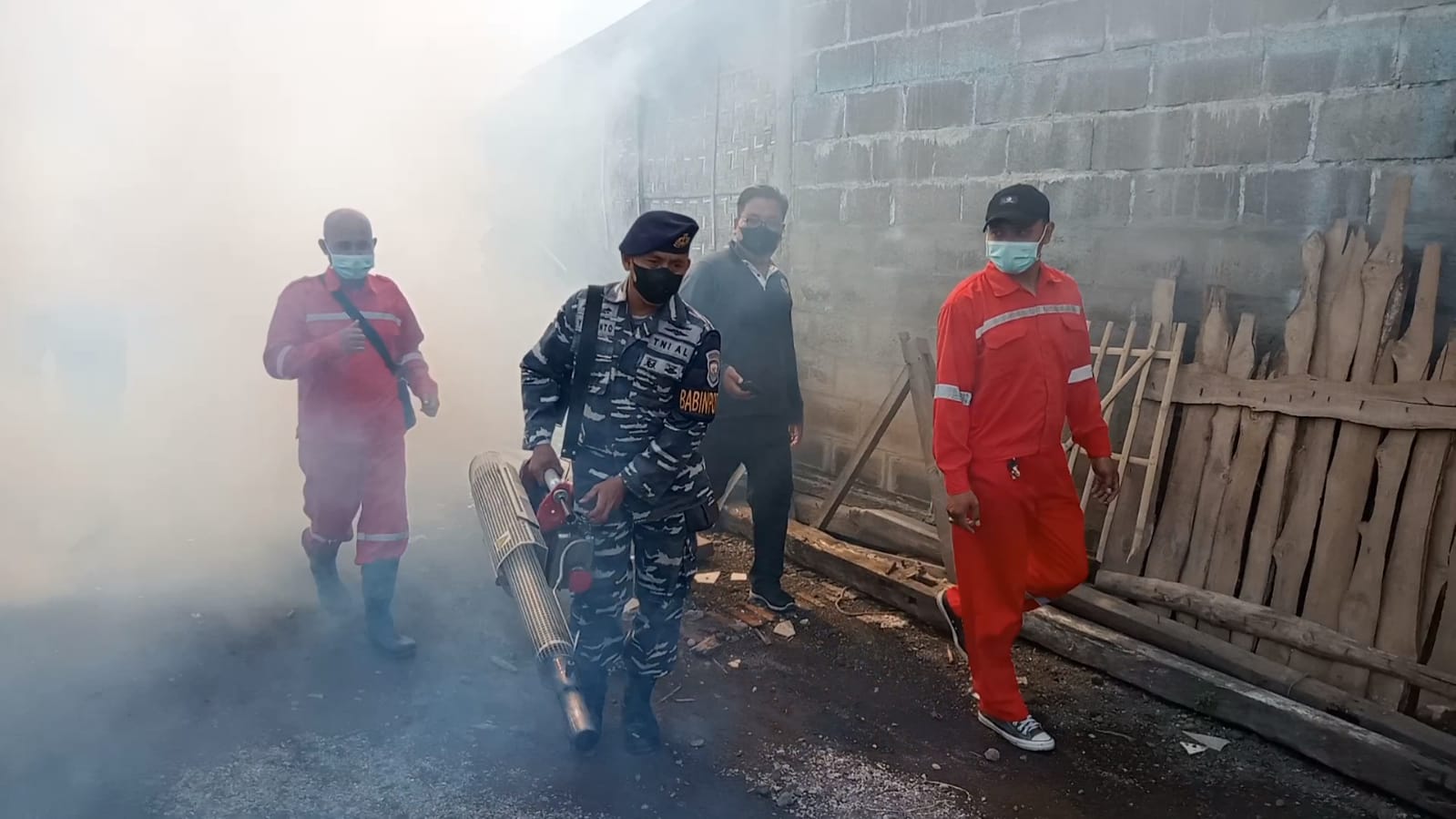 Sebagai upaya menanggulangi bahaya Demam Berdarah Dengue (DBD) di musim hujan ini, Bintara Pembina Potensi Maritim (Babinpotmar) Pangkalan TNI AL (Lanal) Banyuwangi, Kopka TTG Supardi dan Kopka TTG Yulianto berkolaborasi dengan Forum Komunikasi Pimpinan Kecamatan (Forkopimca) dan UPT Puskesmas Jangkar melaksanakan Fogging di Kampung Masjid dan Kampung Dami, Ds. Jangkar Kec. Jangkar, Situbondo. Senin (27/02/2023).