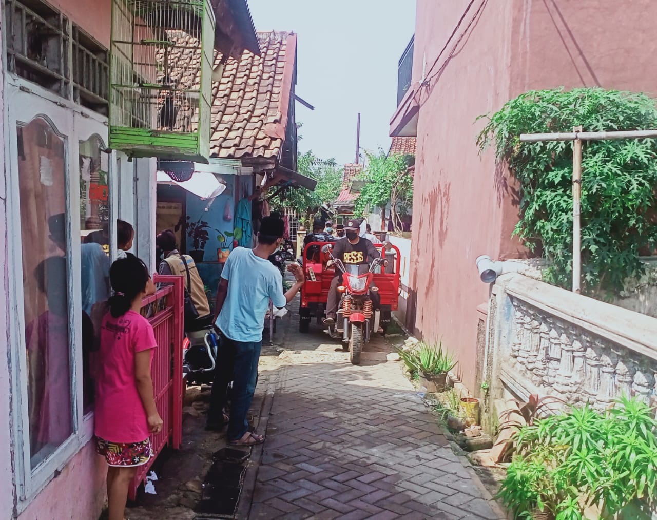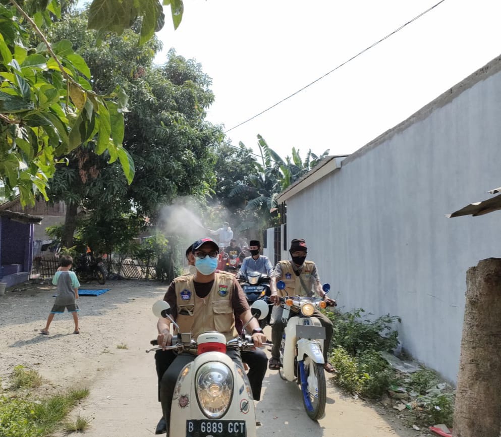 Mengatasi merebaknya Pandemi Global Corona Virus Disease ( Covid 19),Tim relawan PPKM Desa Pondok Jaya Kecamatan Sepatan Tangerang melakukan penyemprotan disinfektan di sekitar tempat tinggal warga pada hari Minggu (04/06/2021) .