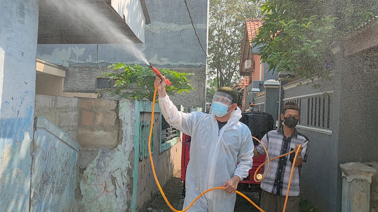 Penyemprotan mulai dilaksanakan ditempat rumah rumah warga, tempat umum di wilayah Desa Pondok Jaya, yang saat ini kasus nya sudah melonjak .