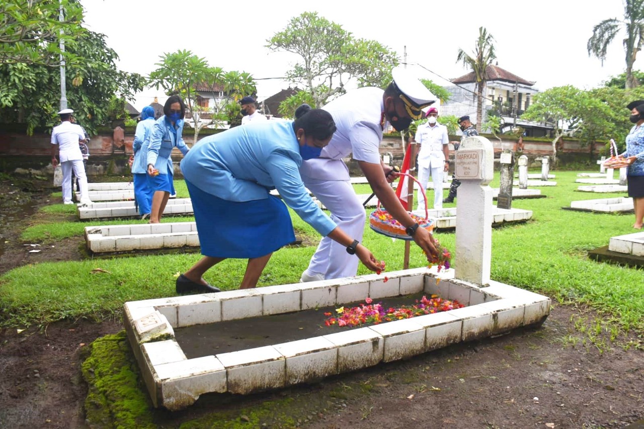 Dalam rangka memperingati Hari Armada RI Tahun 2021 yang jatuh pada tanggal 5 Desember 2021, Komandan Pangkalan TNI AL (Danlanal) Kolonel Laut (P) I Komang Teguh Ardana, S.T. M.A.P., memimpin upacara Ziarah tabur bunga di Taman Makam Pahlawan Pancaka Tirta Tabanan Bali, Senin (6/12/2021).