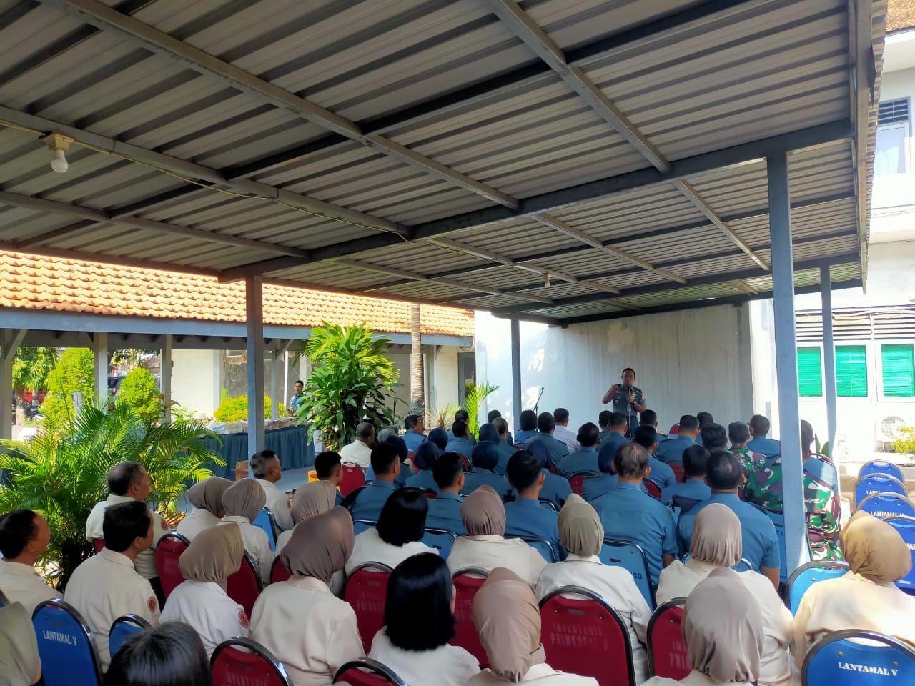 Dalam arahannya Dandenma Lantamal V menyampaikan beberapa hal, antara lain tentang personil proskit agar tetap optimis serta menjaga kesehatan tubuh dan bagi personel yang dalam keadaan sehat selalu menjaga kesehatan dan kebugaran tubuh dengan memanfaatkan waktu olah raga yang diberikan oleh pimpinan.
