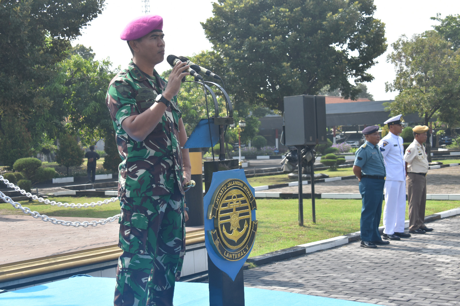 Komandan Detasemen Markas (Dandenma) Lantamal V Letkol Marinir Taufiq Prasetyo memimpin Upacara Kenaikan Pangkat (Kenkat) satu tingkat Bintara, Tamtama dan PNS kala waktu 1 April Tahun 2023. Bertempat di Lapangan Apel Mako Lantamal V Perak, Surabaya. Senin (03/04/2023).