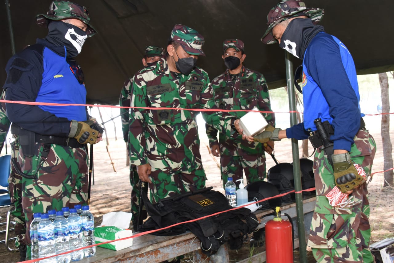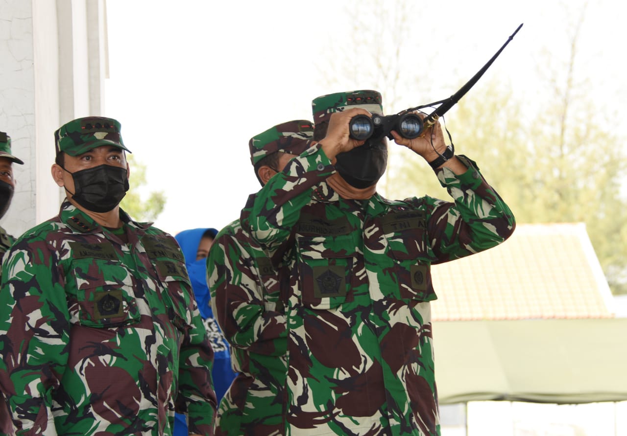 Setelah sebelumnya ditinjau Kasal, Komandan Komando Pembinaan Doktrin Pendidikan dan Latihan TNI AL (Dankodiklatal) Laksamana Madya TNI Nurhidayat didampingi pejabat Utama kembali meninjau pelaksanaan Latihan Praktek (Lattek) menembak meriam dan Demolisi Siswa Pusat Pendidikan Pelaut (Pusdikpel) Kodikopsla di Pusat Latihan Tempur (Puslatpur) Pantai Paiton Probolinggo Jawa Timur, (15/10/2021).