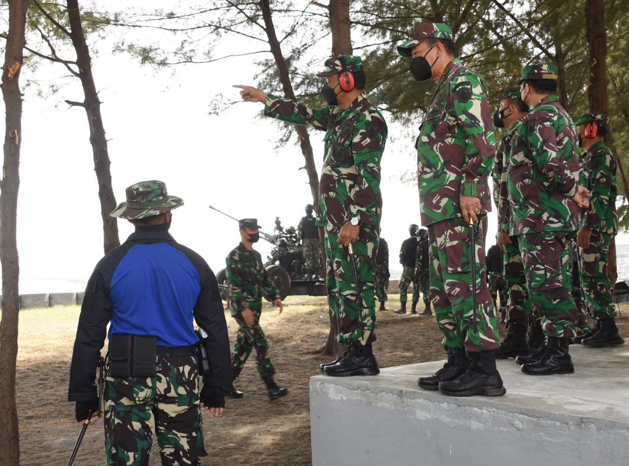 Bertindak sebagai selaku Perwira Pelaksana Latihan (Palaklat) Lattek menembak Meriam Komandan Sekolah Artileri (Danseart) Letkol Laut (P) Surya Ari Muryanto, sedangkan