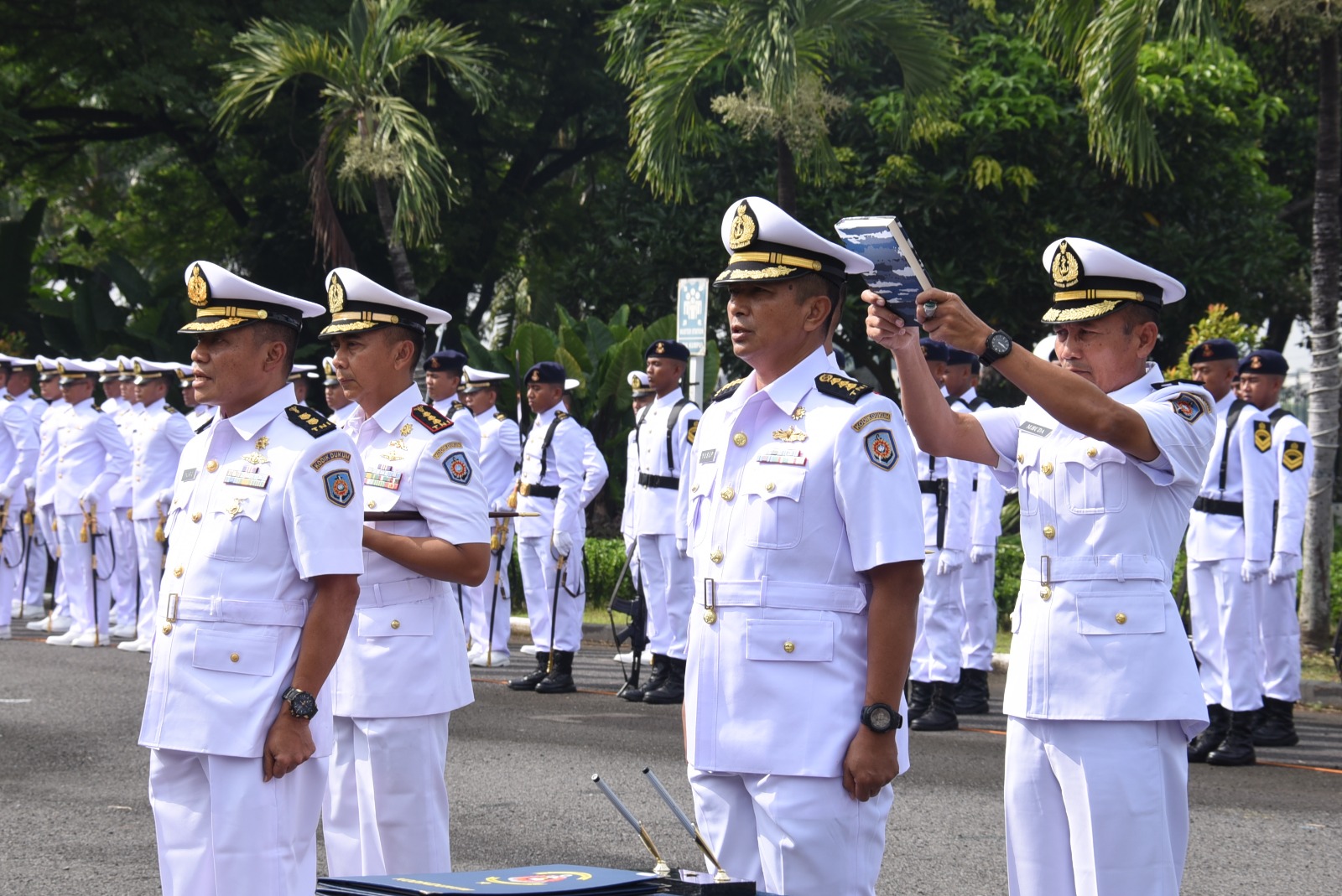 Komandan Kodikdukum (Dankodikdukum) Kodiklatal Laksma TNI Dr. Taufik Arief memimpin Upacara Serah Terima Jabatan (Sertijab) dua jabatan strategis di jajaran Pusdik, yakni Komandan Pusdiklek (Danpusdiklek) Kodiklatal dari Kolonel Laut (E) I Ketut Riasmaja kepada Kolonel Laut (E) Yusup Budi Santoso dan Komandan Pusdikkes (Danpusdikkes) Kodiklatal dari Kolonel Laut (K) dr. Pudjo Dwi Laksono kepada Letkol Laut (K) Fajar Gunawan, bertempat di Lapangan Mako Kodikdukum Kodiklatal, Bumimoro Surabaya. Senin (22/04/2024).