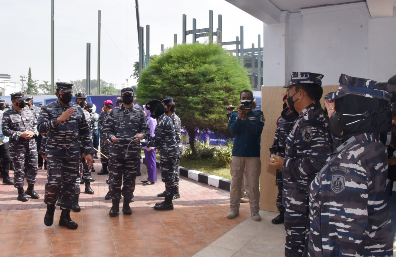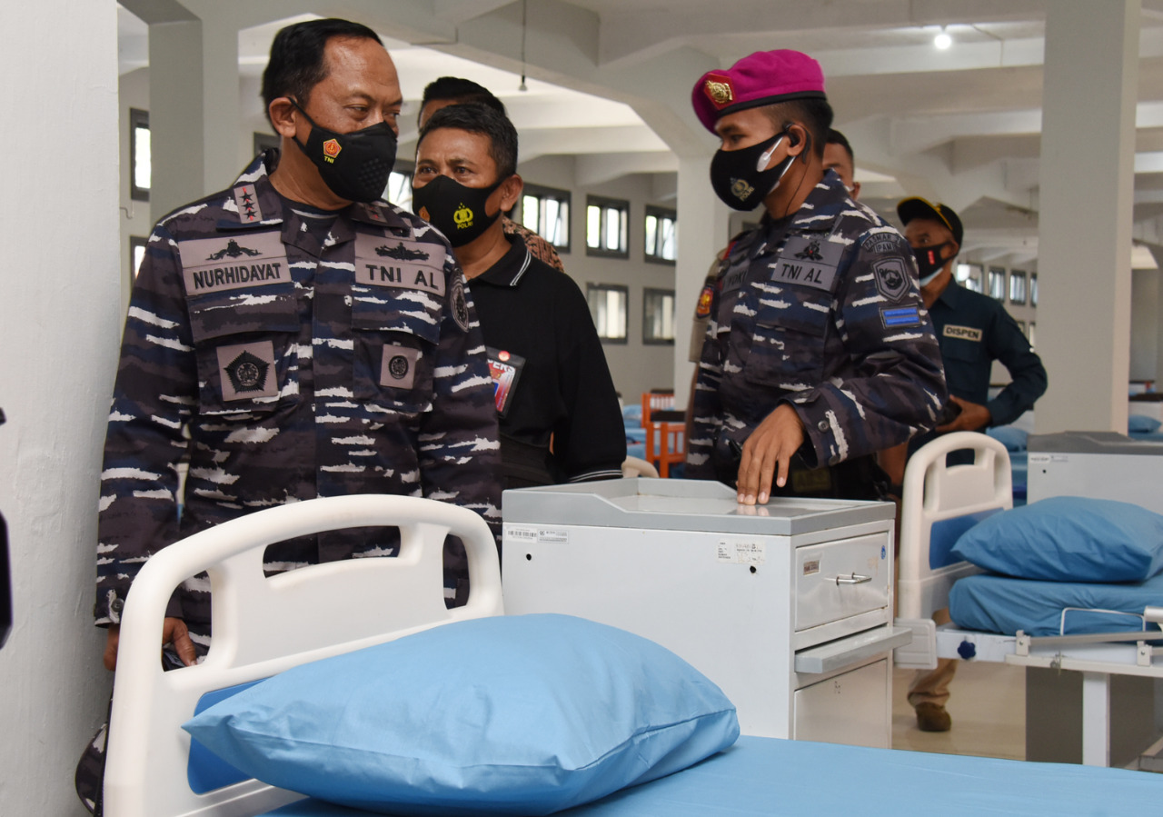 Komandan Komando Pembinaan Doktrin Pendidikan dan Latihan TNI AL (Dankodiklatal) Laksamana Madya TNI Nurhidayat mendampingi Kepala Staf Angkatan Laut (Kasal) Laksamana TNI Yudo Margono, S.E., M.M meninjau tiga Sarana dan Prasarana (Sarpras) TNI AL untuk penanganan Covid 19 di wilayah Surabaya, Jumat, (20/8/2021).