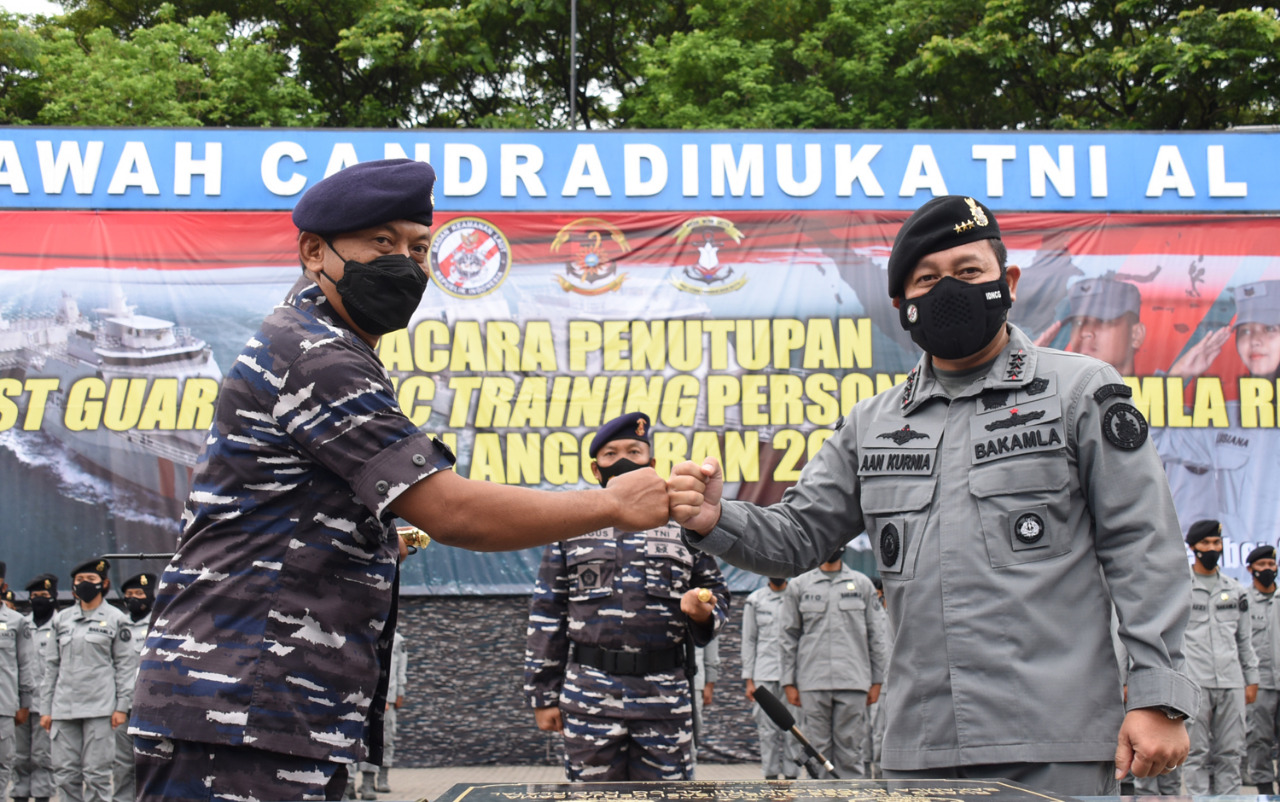 Komandan Komando Pembinaan Doktrin Pendidikan dan Latihan TNI AL (Dankodiklatal) Laksamana Madya TNI Nurhidayat menghadiri upacara penutupan Coast Guard Basic Training (CGBT) Tahun 2021 yang dilaksanakan di lapangan Candradimuka Pusat Latihan Pendidikan Dasar Militer (Puslatdiksarmil) yang berlokasi di Juanda Sidoarjo. Adapun penutupan Coast Guard Basic Training dipimpin langsung Kepala Badan Keamanan Laut Republik Indonesia (Bakamla RI) Laksdya TNI Dr. Aan Kurnia. Jumat, (3/12/2021).