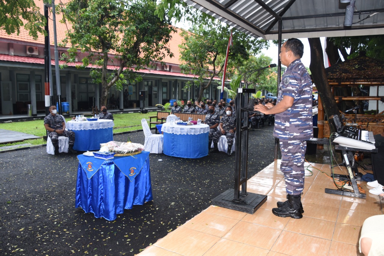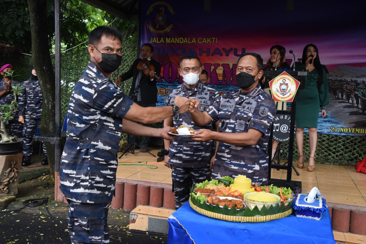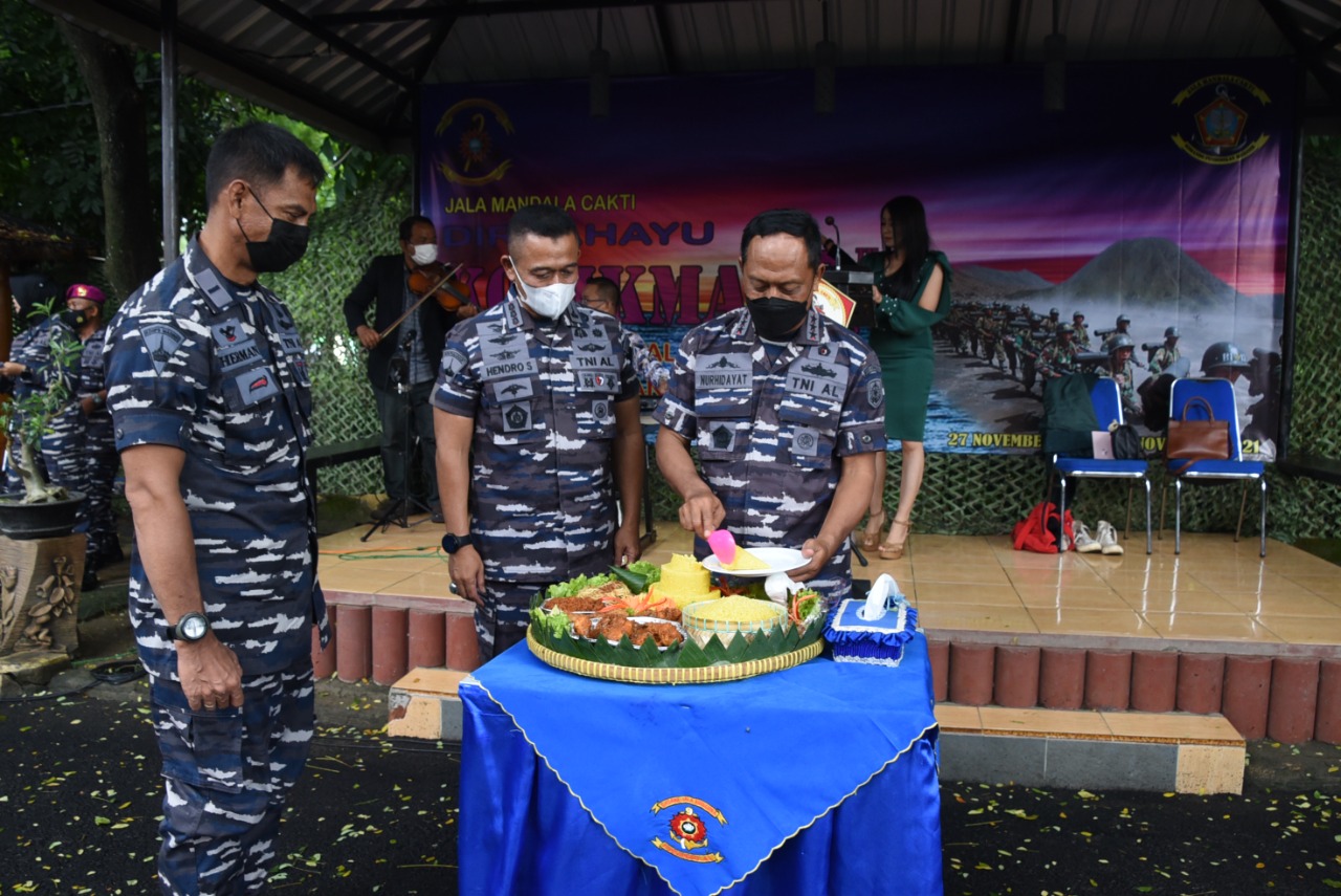Komandan Komando Pembinaan Doktrin Pendidikan dan Latihan TNI AL (Dankodiklatal) Laksamana Madya TNI Nurhidayat dan Pejabat Utama Kodiklatal menghadiri tasyakuran puncak peringatan Hari Ulang Tahun (HUT) Komando Pendidikan Marinir (Kodikmar) Kodiklatal ke-71 Tahun 2021, adapun tasyakuran tersebut digelar di Mako Kodikmar Gunungsari Surabaya, Jumat, (26/12/2021).