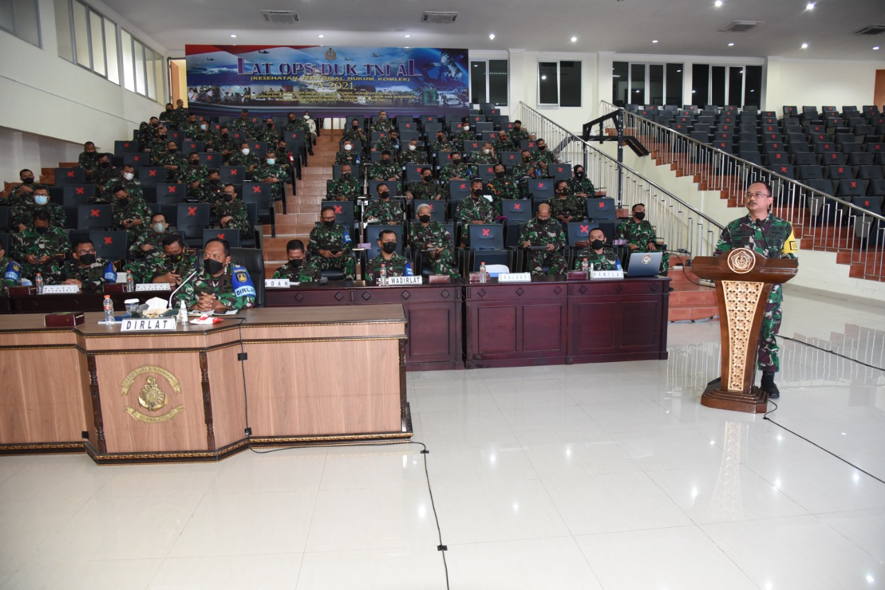Komandan Komando Pembinaan Doktrin Pendidikan dan Latihan TNI AL (Dankodiklatal) Laksamana Madya TNI Nurhidayat selaku Direktur Latihan (Dirlat) Latihan Operasi Dukungan (Latopsduk) II TNI AL TA 2021 memimpin pelaksanaan kaji ulang dan Penutupan Latopsduk II TNI AL TA 2021 melalui Vidio Conference (Vicon) dari Ruang Auditorium Gedung R Sudomo Pusat Latihan Operasi Laut (Puslatopsla) Kesatrian Kodiklatal Bumimoro Surabaya. Rabu, (17/11/2021).