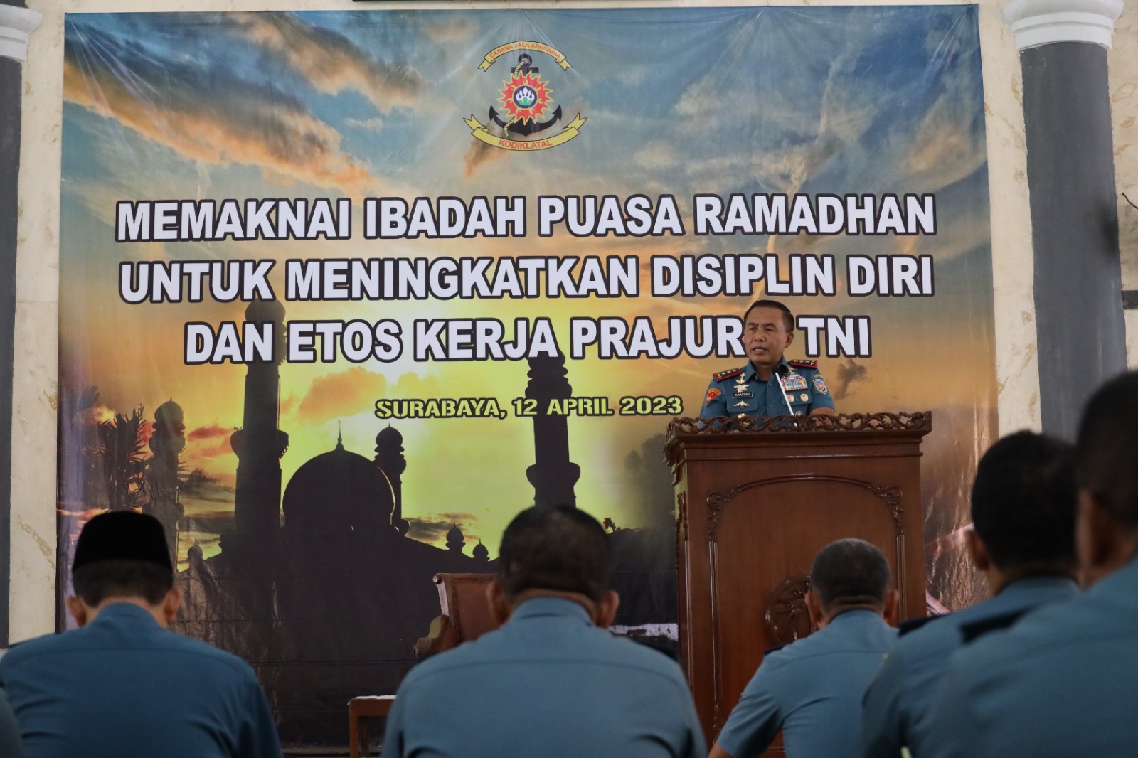 Demikian dikatakan Komandan Komando Pembinaan Doktrin Pendidikan dan Latihan TNI Angkatan Laut (Dankodiklatal) Letjen TNI Marinir Suhartono didampingi Wakil Komandan (Wadan) Kodiklatal Laksda TNI Rachmad Jayadi saat membuka Peringatan Nuzulul Qur’an 1444 Hijriyah / 2023 M yang mengangkat tema, “Memaknai Ibadah Puasa Ramadhan Untuk Meningkatkan Disiplin Diri dan Etos Kerja Prajurit TNI,” bertempat di Masjid Ibadurrahmaan Kodiklatal, Bumimoro Surabaya. Rabu, (12/04/2023).