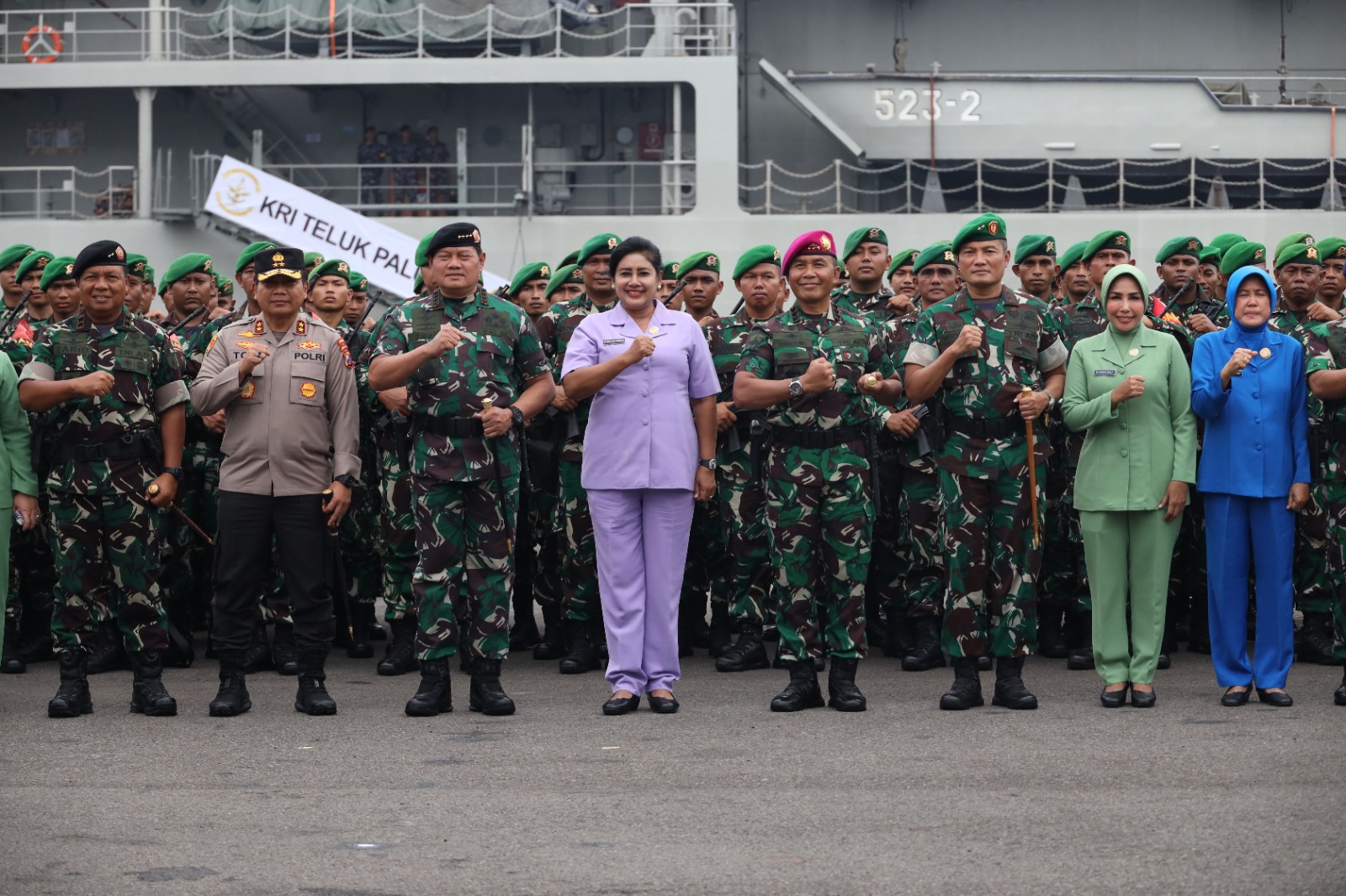 Pemberangkatan Satgas Pamtas Kewilayahan Provinsi Papua jajaran TNI Angkaran Darat dengan KRI Teluk Palu – 523 ini dari Yonif 527/BY berjumlah 450 personel sedangkan Yonif 407/PK sebanyak 400 personel.