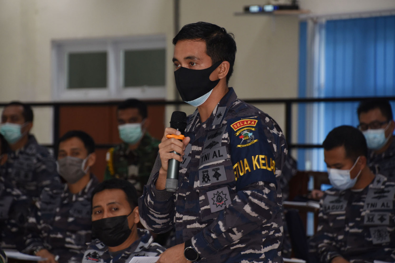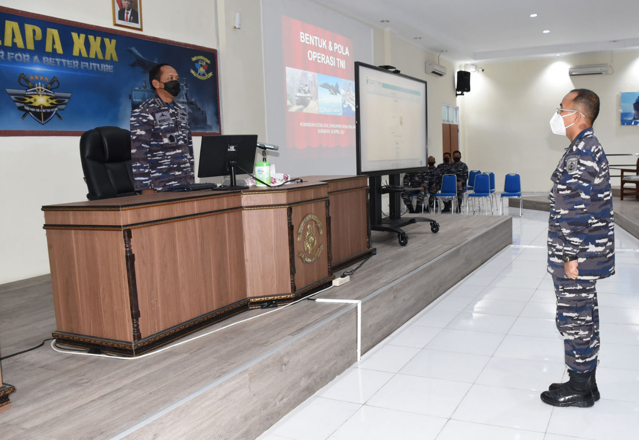 Guna mengoptimalkan pelaksanaan pendidikan di lingkungan Komando Pembinaan Doktrin Pendidikan dan Latihan Angkatan Laut (Kodiklatal) sekaligus memanfaatkan jam Komandan, Komandan Kodiklatal Laksamana Madya TNI Nurhidayat memberi pembekalan kepada siswa Pendidikan Lanjutan Perwira (Diklapa) TNI AL Angkatan ke-30 yang dilaksanakan di gedung Belatrix Sekolah Lanjutan Perwira (Selapa) Kesatrian Kodiklatal Bumimoro Surabaya, Senin, (3/5/2021).