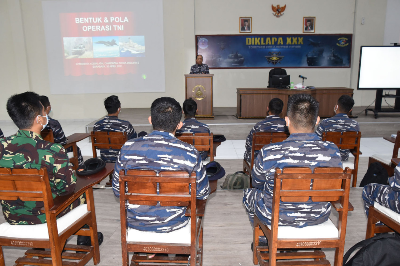 Pembekalan kepada Siswa Diklapa Angkatan XXX tersebut merupakan salah satu implementasi Perintah Harian Kepala Staf Angkatan Laut (Kasal) Laksamana TNI Yudo Margono, S.E., M.M yaitu pembangunan Sumber Daya Manusia (SDM) TNI Angkatan Laut yang unggul, profesional dan tangguh dalam rangka menghadapi segala ancaman.