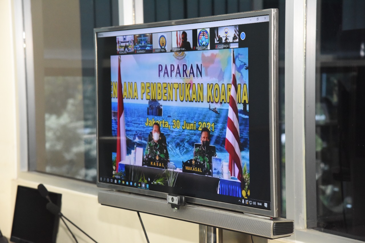 Komandan Komando Pembinaan Doktrin Pendidikan dan Latihan TNI Angkatan Laut (Dankodiklatal) Laksamana Madya TNI Nurhidayat menghadiri paparan rencana pembentukan Komando Armada (Koarmada) Republik Indonesia melalui Daring di Ruang Puskodal Gedung Ki Hadjar Dewantara Kodiklatal Bumimoro Surabaya. Adapun paparan pembentukan Koarmada RI tersebut dipimpin langsung Kasal Laksamana TNI Yudo Margono, S.E., M.M dari ruang Mabesal Cilangkap Jakarta, Rabu, (30/6/2021).