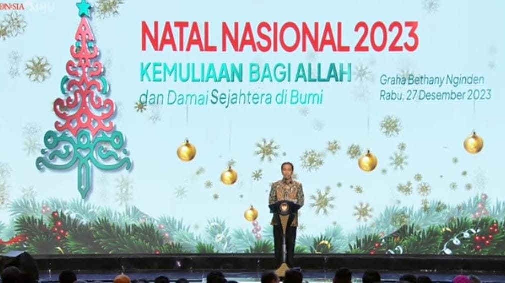 Dalam sambutannya, Presiden RI kepada seluruh umat Kristiani di pelosok negeri dan di luar negeri mengucapkan Selamat Hari Raya Natal Tahun 2023. Semoga kehangatan natal memenuhi hati kita dengan penuh suka cita, damai dan sejahtera. Puji dan syukur kepada Tuhan Yang Maha Kuasa bahwa kita bisa menikmati suasana natal ini dengan penuh kedamaian, persaudaraan serta kasih sayang.