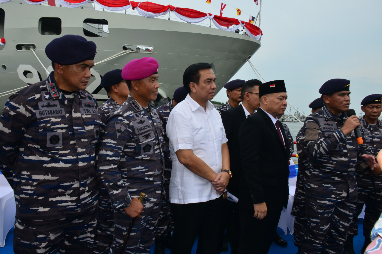 Komandan Komando Pembinaan Doktrin Pendidikan dan Latihan TNI AL (Dankodiklatal) Letnan Jenderal TNI Marinir Suhartono, didampingi Ketua Gabungan Jalasenastri Kodiklatal Ny. Etta Suhartono, menghadiri acara serah terima KRI dr. Radjiman Wedyodiningrat-992 (KRI RJW-992) dan Upacara Pengukuhan Komandan KRI RJW-992 yang dipimpin oleh Kepala Staf Angkatan Laut (Kasal) Laksamana TNI Muhammad Ali, S.E.,M.M.,M.Tr.Opsla, di Dermaga Bandar Barat Divisi Kapal Niaga PT.PAL Surabaya ,Kamis (19/1).