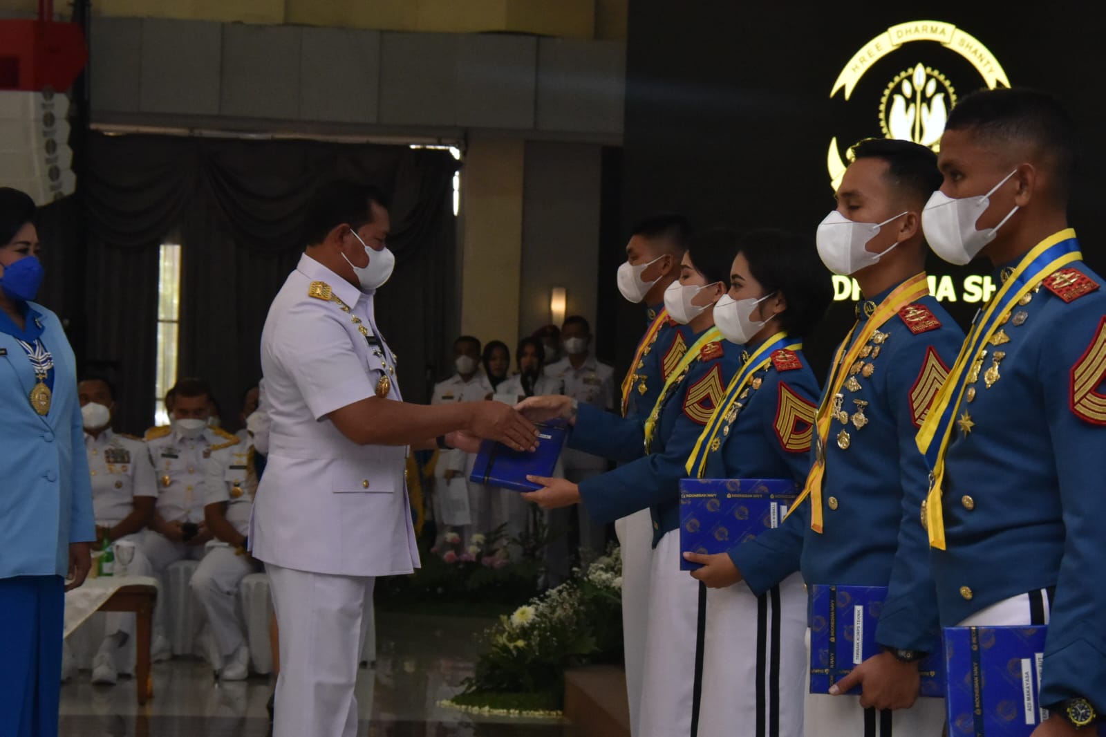 Selanjutnya secara khusus Kasal mengucapkan selamat kepada para Taruna dan Taruni yang mendapatkan penghargaan. “ Semoga ilmu yang kalian dapat serta prestasi yang telah diraih tidak membuat kalian semua merasa puas, namun jadikanlah sebagai acuan untuk mendukung TNI AL . Dan bagi para taruna yang belum mendapat prestasi janganlah berkecil hati, semoga di kedinasan kalian semua mendapatkan prestasi yang lebih dari pencapaian siswa yang berprestasi,” tutur Kasal.