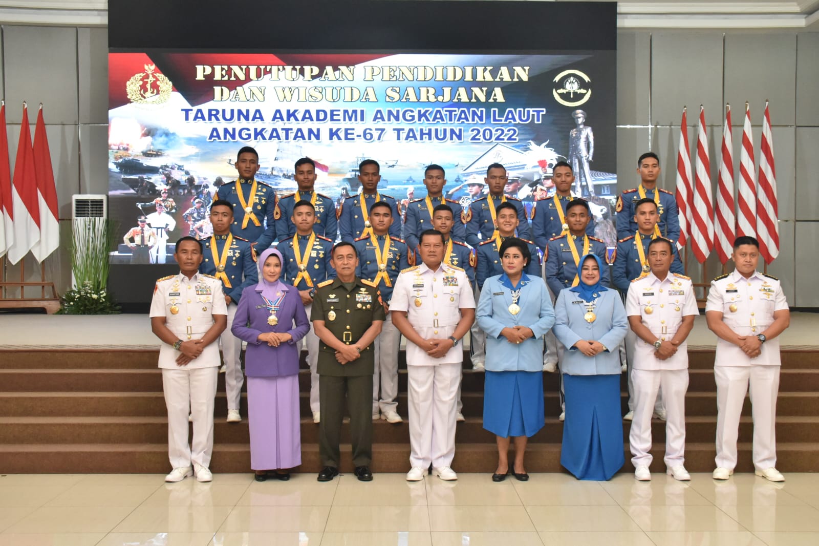 Komandan Komando Pembinaan Doktrin Pendidikan dan Pelatihan TNI Angkatan Laut (Dankodiklatal), Letnan Jenderal TNI (Mar) Suhartono turut hadir dalam Penutupan Pendidikan (Tupdik) dan Wisuda Sarjana Taruna Akademi TNI Angkatan Laut atau AAL Angkatan ke-67 oleh Kepala Staf TNI Angkatan Laut (Kasal) Laksamana TNI Yudo Margono yang dihelat di Gedung Maspardi AAL pada Jumat (24/6/2022).